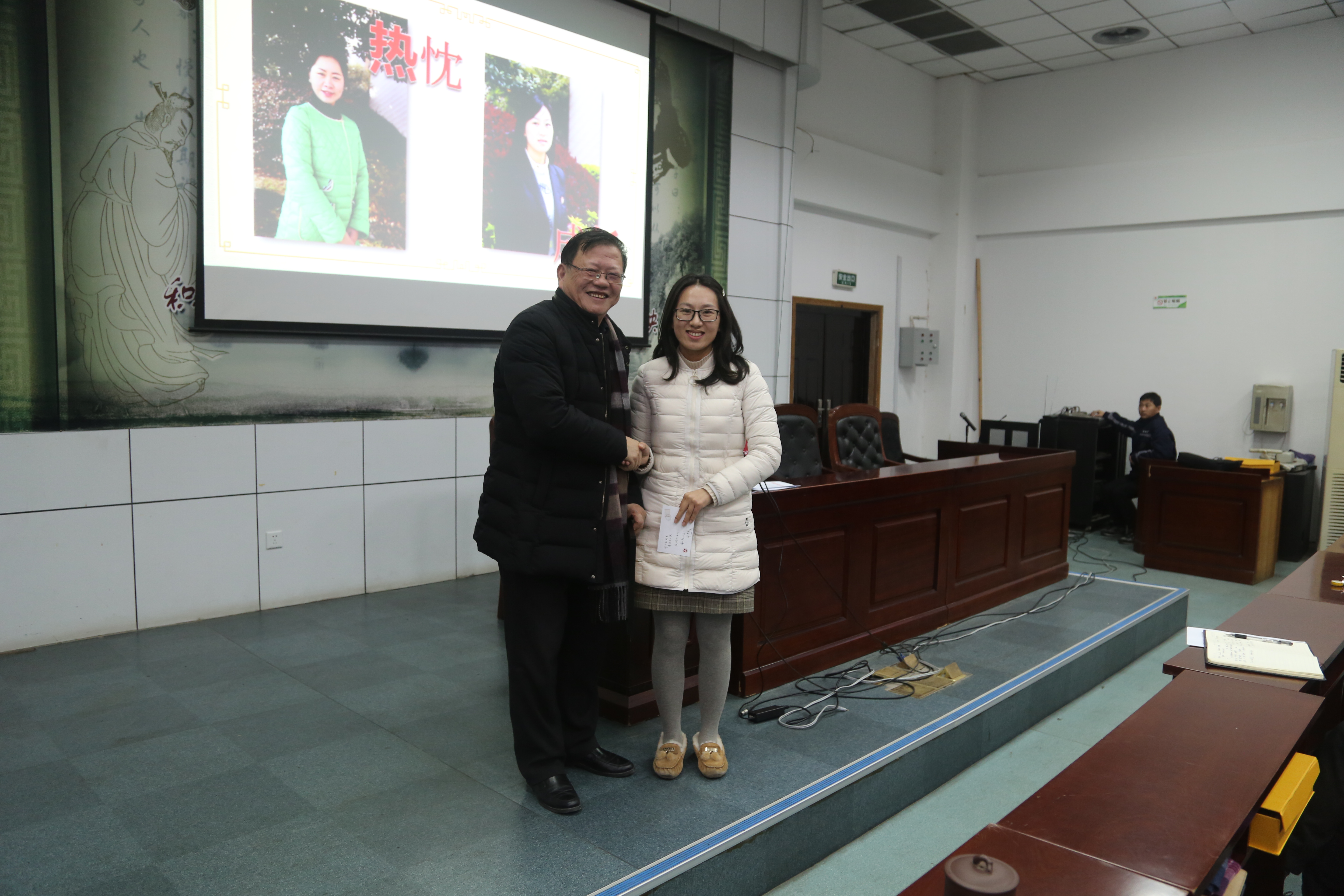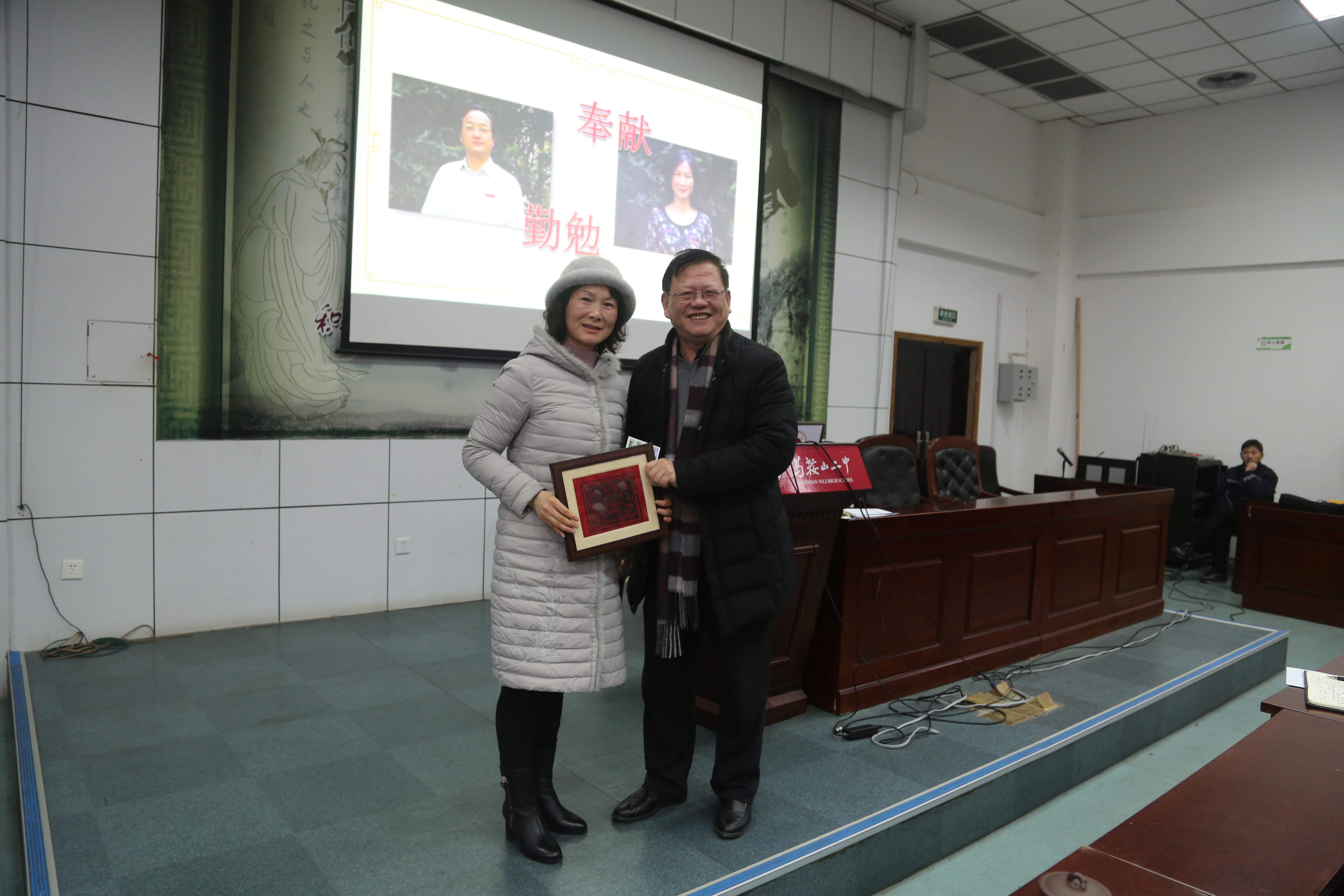郭惠宇校(xiào)長(zhǎng)做主題報告(gào),他首先回顧(gù)2019年學校的十件大事。十件大事中(zhōng),有黨政工(gōng)作的進展、有教育教學(xué)的(de)成果、有校園硬件的完善、還有學生活動的創新。這些大事中有可(kě)喜的變化,也有小小的遺(yí)憾。郭校長總結(jié)2019,展望2020,堅信二中會有更進一步的發展(zhǎn)。然後(hòu)感謝了全校教職工一年(nián)來在工作中的努力付出,祝福大家新春快樂。郭校(xiào)長從(cóng)許多兢(jīng)兢業業的二中教師中挑出(chū)具有代(dài)表(biǎo)性的十位同誌,將我校學生創作的版畫作品贈送給他們,並合影留戀。最後郭校長指出,作為(wéi)教師,91视频网站還應該提升教育理念,堅持不懈地提高自己的教學水平。