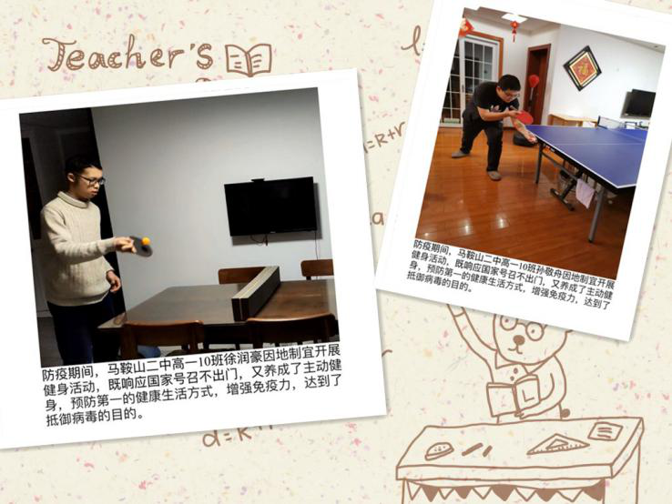 課程未停,鍛煉亦不能停。雖(suī)然戶外運動減少,但我每天在家中堅持健身,強(qiáng)化身心,這樣才能(néng)更有活力額(é)度投入學習。疫情期間,在家鍛煉(liàn)我爭先! ——103程宏宇