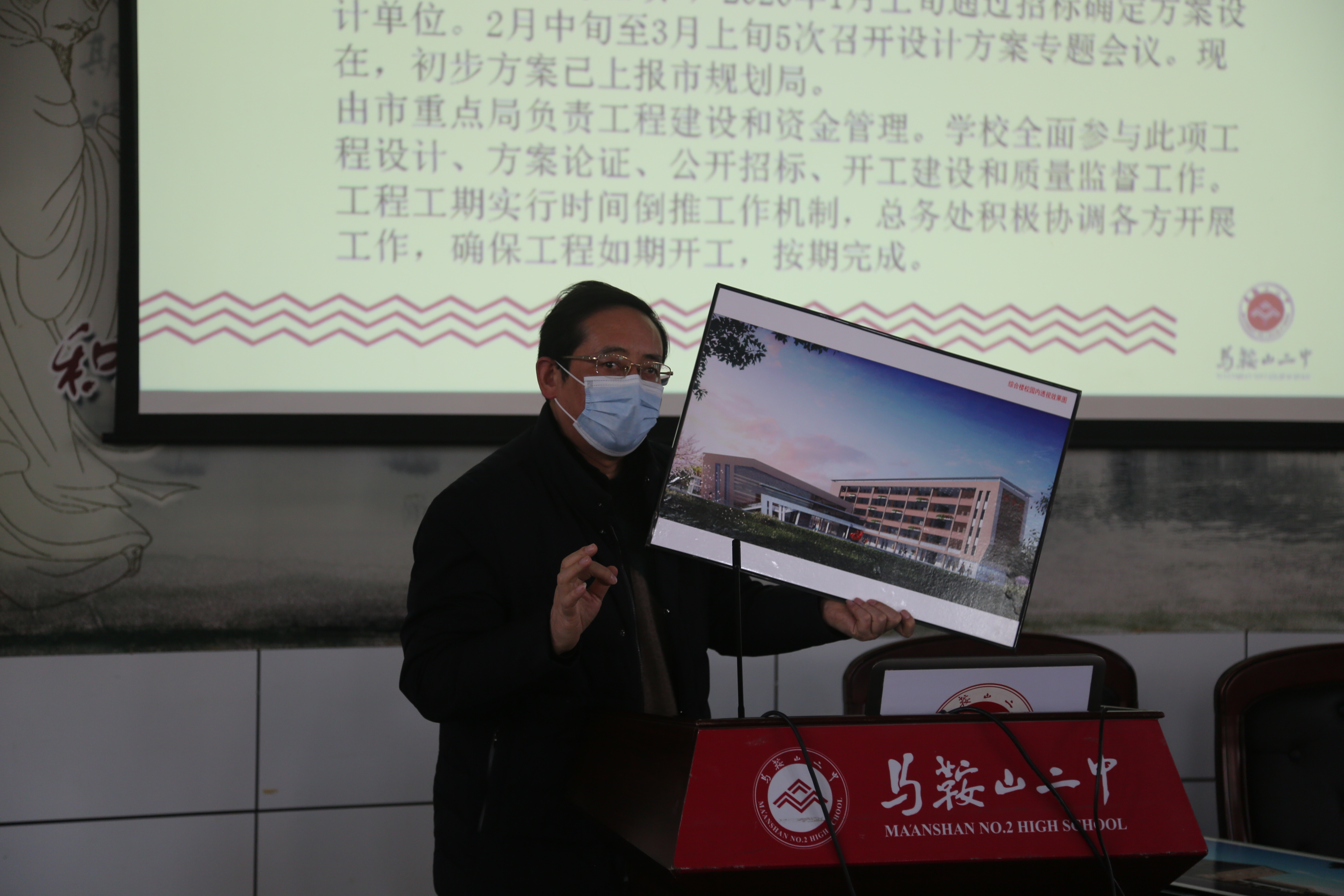 褚亞飛副校長對(duì)2020年學校新建、維(wéi)修改造工程項目做了簡單介紹。