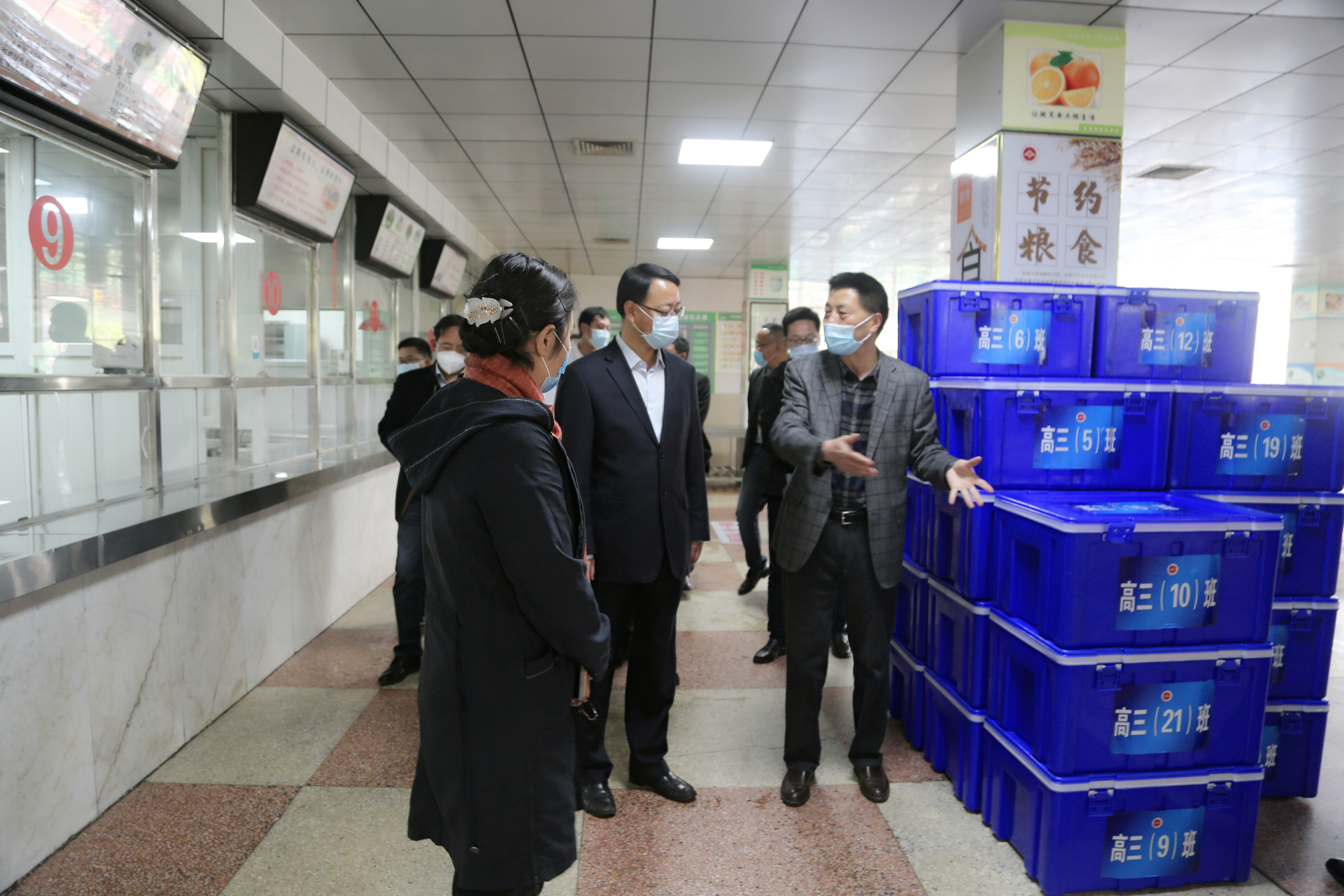 楊善斌一行先後來到我校南校(xiào)門、食(shí)堂等區域,沿途聽取了(le)校長王玉平、校黨委書(shū)記聶曉霞關於學(xué)生返校複課防疫工作、學校食堂疫(yì)情防(fáng)控和食品安全工作的匯報。在我校食堂(táng),楊善斌實地查看了學校食堂衛生消毒、師生就餐環境、食堂(táng)超市安全狀況和硬(yìng)件設(shè)施配備等情況,並與學校(xiào)負責同誌深入探討食品安全的各項措施,叮囑細化完善方案,做到科學(xué)營養(yǎng)配餐,確保安(ān)全有序開學複課。