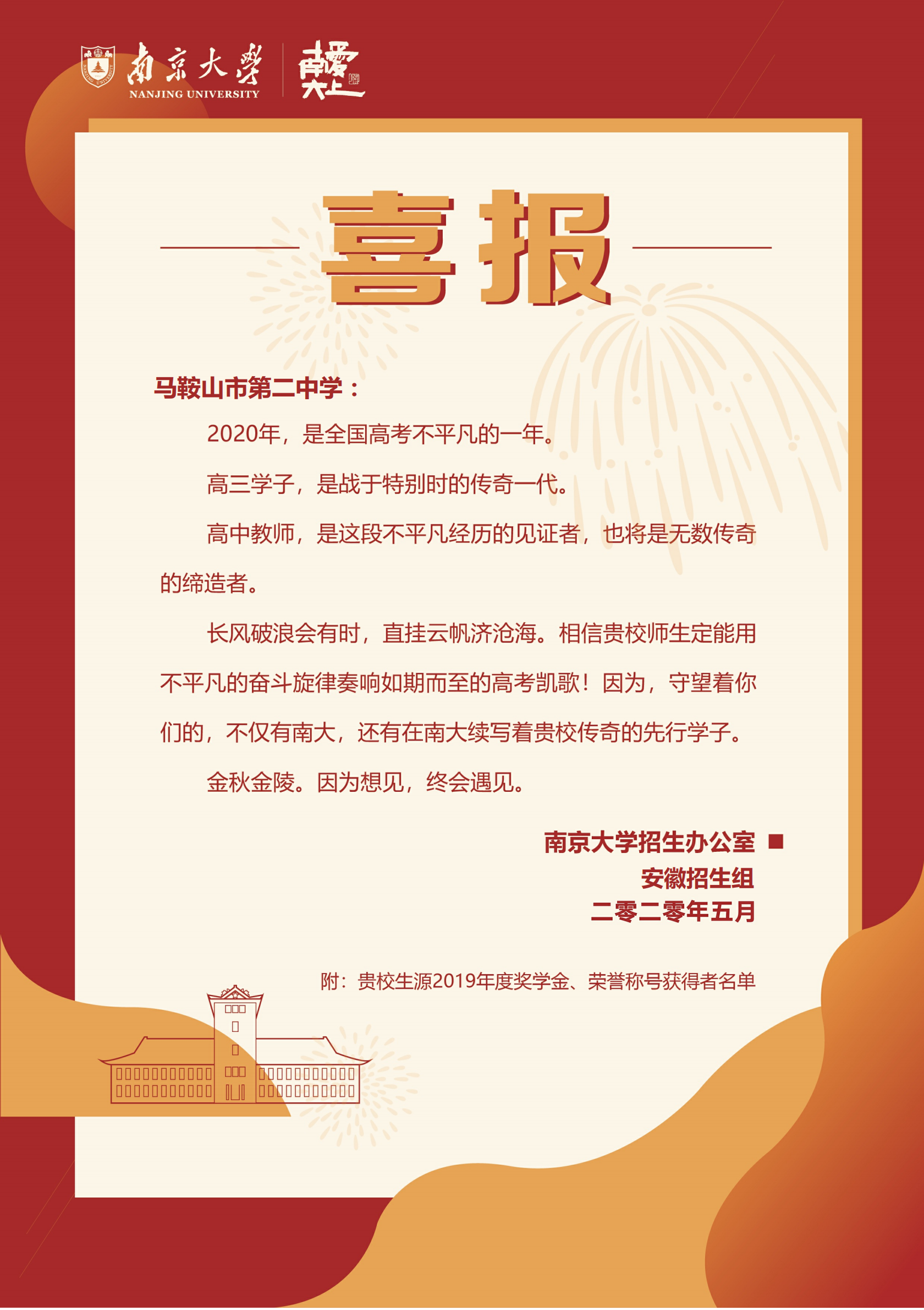 南京(jīng)大學向我校發來喜(xǐ)報!