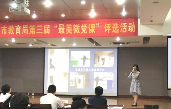 6月9日下(xià)午,市教育局第三屆“最美微黨課”在市(shì)教育局(jú)第一會議室舉行,17個黨支部分別用(yòng)朗誦、講述、情景劇等形式為大家呈現了一個個動人的初心故事。市教育局黨委副書記、副局長(zhǎng)陸秋雯,市教育局(jú)二級調研員汪久生(shēng)與全市教育係統部分黨員幹部代表一起(qǐ)觀看了比賽並為參賽選手頒發獲獎證書。市二(èr)中黨委第二黨支部黨員教師唐(táng)舒婭、第一黨支部黨員教師魯(lǔ)燕最終在17堂精彩的“最美微黨課”中脫穎而出,分獲一等獎和優秀獎。我校(xiào)朱家讀、祖冬華等十餘名(míng)黨員(yuán)代表全程觀看了比賽。
