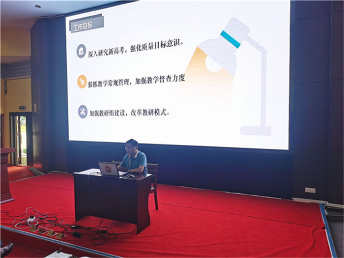學(xué)校三大處負責人介紹本學期的重點工作安排。教(jiāo)導處主任葉張(zhāng)平(píng)提出本學期工作重點將集中在製度建設、教學管理、強(qiáng)基計(jì)劃、創(chuàng)新舉措四個(gè)方麵,突出強(qiáng)調了新課程的實施與(yǔ)新高考對接工作。