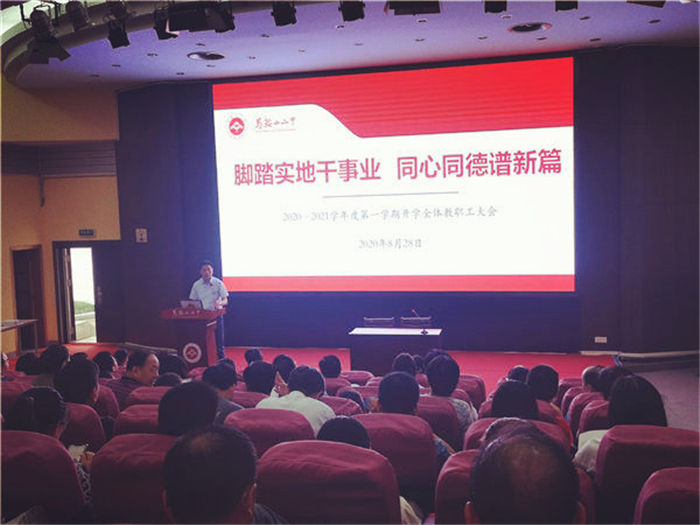 8月28日下午,我(wǒ)校在圖書館報告廳舉行2020-2021學年第一(yī)學期開學工作會議,全(quán)體教職工參加,副校長褚亞飛主持會議。