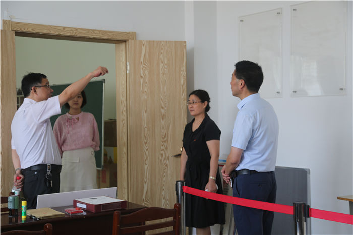 8月27日(rì)下午,市教育局黨委書記、局長汪昌斌,辦公室主任謝陽(yáng)一行親臨我校(xiào),督查我校文(wén)明校園創建工作。校長王玉平、校黨委(wěi)書記聶曉霞及其(qí)他學校領導(dǎo)和各相關部門負責人陪同(tóng)督查。