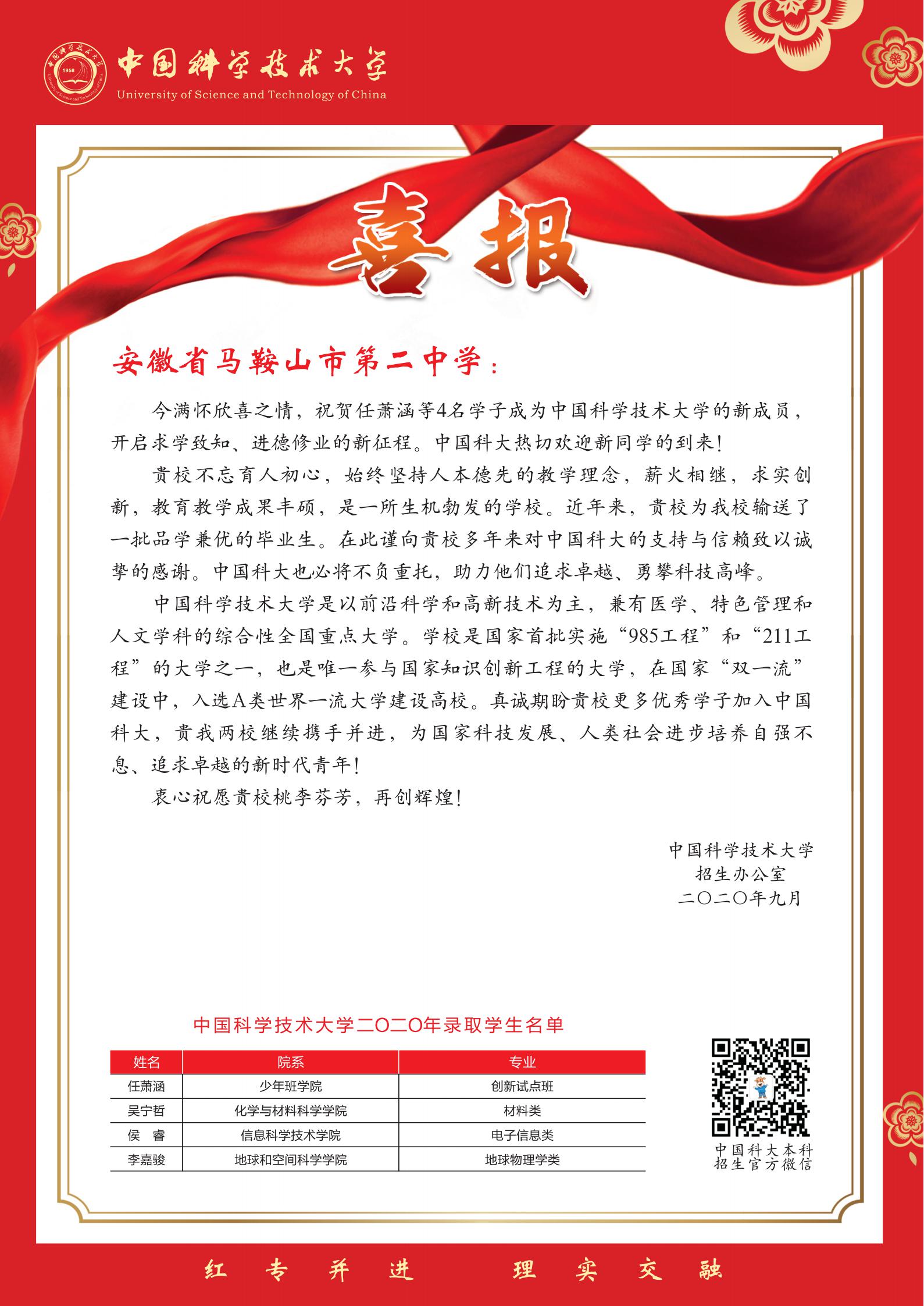 中國(guó)科學技術大學發來喜報(bào)!