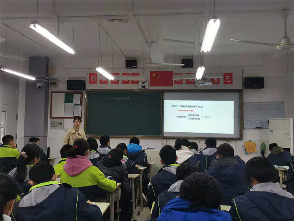 沙莎老師進行(háng)了《物質的量濃(nóng)度》第一課時的(de)展示。從回憶初中階段溶液組成的表示方法出(chū)發,引入生活(huó)中對溶液組(zǔ)成的表示更加方便的一種方法——物質的量(liàng)濃度的學習。在講解了概念(niàn)、公式之後,展示了不同情況下溶質的物質(zhì)的量濃度的計算題目,並通過提問互動及時發現學生理(lǐ)解新概念及運用時出現的問題,深化了學生對概念的認(rèn)識和理解,也實現了對課堂目標完(wán)成(chéng)的評價。