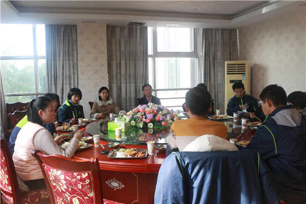 中午,同學們在學(xué)生校(xiào)助的(de)帶領下,一同(tóng)到馬鞍山二中食堂(táng)二樓的包間,和(hé)王玉平校長共進午餐。飯菜十分豐盛,有廣受同學們喜愛的雞排和酸奶。簡單地吃(chī)完午飯,同學們開始(shǐ)向王校長提出自己在學習和生活上的困惑。