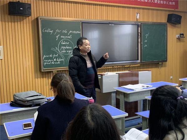 第二節課是由朱惠老師帶來的一節生動活潑的綜合技能課,朱老師以一則(zé)公益廣告導入,自(zì)然流暢地引出主題。整節課都圍繞“人與動物的關(guān)係”展開(kāi),基於語篇。朱老師先是引導學生利用已有(yǒu)的知識框架探(tàn)討動物(wù)的重(chóng)要性,然(rán)後(hòu)通(tōng)過讓學生欣賞視頻和語篇,層層推(tuī)進,通過提問、填空等方式,引導學(xué)生進一步思考人類行為對動物的危害;與此同時,鼓勵學(xué)生積極討論,引發(fā)學(xué)生對如何保護動物進行深入思考,在(zài)小組討論之後,讓學生基於討論結果在10分鍾內小組完成一篇演講稿的創作。在課(kè)堂的最後,朱老師邀請了3名同學當堂展示了他們小組的作品,並讓(ràng)其他小組成(chéng)員分別對他們給(gěi)出了評價。