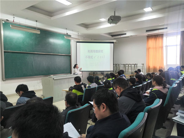 本次活動中,首先分別由市二中田雨湄老師和二中博望分校葛泉贇老師展(zhǎn)示公開課,田(tián)老師的課題是《利用導數研究不等式》,葛老(lǎo)師(shī)的課題(tí)是《一(yī)元三(sān)次函數圖象和性質》。本次活動打破了公(gōng)開課喜歡展示新課的常規,兩位老師展示的(de)都是複習課,為老師們的複習課的研究提供了素材。