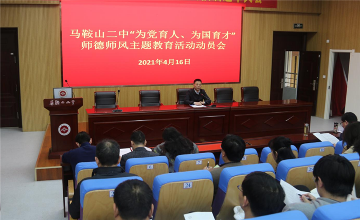 為紮實開展好師德師風主題(tí)教育活動和黨史學習教育,4月16日下午,馬鞍山(shān)二中召開“為黨育人、為國育才”師德師風主題教育活動動員部署會暨(jì)教職工理論學習會。校黨委副書記聶曉霞(xiá)主持(chí)會議,全體教職工參會。