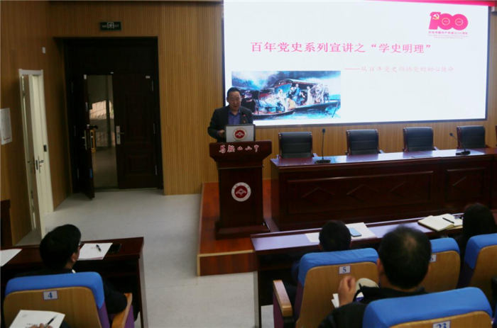 會上,校黨委宣傳委員、副校長(zhǎng)王躍兵領學了習近平總(zǒng)書記的重要文章《在黨史學習(xí)教育動員(yuán)大會上的講話》,並主講(jiǎng)《“黨史百年”係列黨課報告之“學(xué)史(shǐ)明理”——從百年黨史領悟初(chū)心使命》,報告以中國共產黨曆史(shǐ)發展進程中“救國史”“興國史”“富國史”“強國史(shǐ)”為線索,回顧了中國共產黨百年奮鬥的光輝曆程,總結了中國共產黨革命、建設、改革、發展(zhǎn)各(gè)階段的基本經驗,進一步加深了廣(guǎng)大(dà)教職工對中國共產黨百(bǎi)年奮鬥(dòu)曆史的認識和理解。