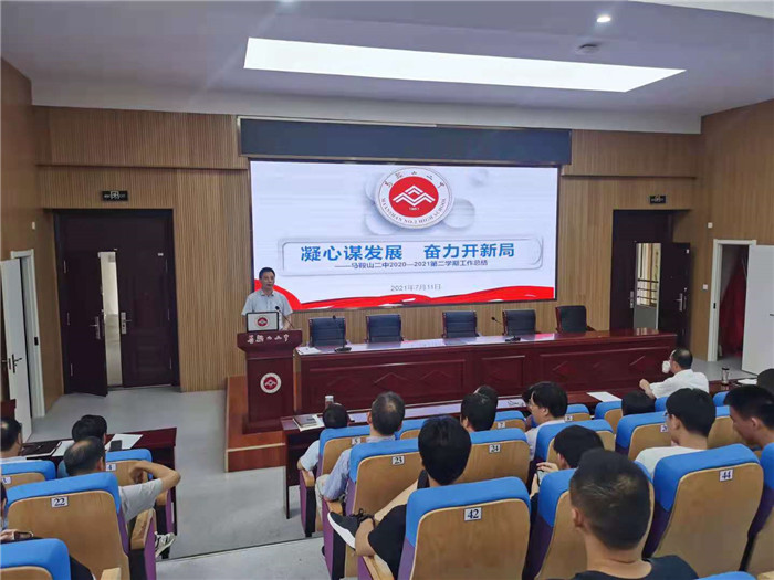 7月11日下午(wǔ),馬鞍山二中在(zài)二(èr)樓報告廳(tīng)召開了(le)2020—2021第二學期結束工作會議,全體教職工參加了會議。校黨委書記、校(xiào)長王玉(yù)平以《凝心謀(móu)發展 奮力開新局(jú)》為題,從學期工作總結、暑期工作安排,暑期注意事項等三個方麵作了本(běn)學期工作報告。