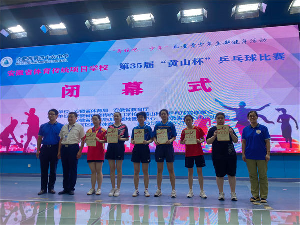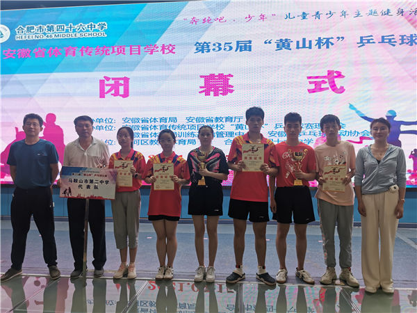 2021年7月13日至15日,安徽省體(tǐ)育傳統(tǒng)項目學校第35屆“黃山杯”乒乓球比賽在合肥市第四十六中學隆重舉行,我校(xiào)乒乓球隊員不畏強手,取得(dé)了4金(jīn)3銀1銅的好成績。此(cǐ)次比賽,我校共派出6名隊員(男女各3人),他們有勇有謀,頑強拚搏,經過幾輪鏖戰(zhàn),最終摘金奪(duó)銀(yín),取得4金3銀1銅的最好成績。主要成績分別是:男子(zǐ)團(tuán)體第二(彭彥博、楊羽開、許達內)、女子團體第二(陳潔雨、黃(huáng)祺茜、蔣心樂)、女子(zǐ)單(dān)打第一(yī)(陳(chén)潔雨)、男子雙打第一(彭彥博、楊羽開)、女子雙打第一(陳潔雨、黃(huáng)祺茜(qiàn))、男女混合雙打(dǎ)第一(彭彥博、陳潔(jié)雨)、男子單打第二(彭彥博)、男子單打第三(楊羽開)。