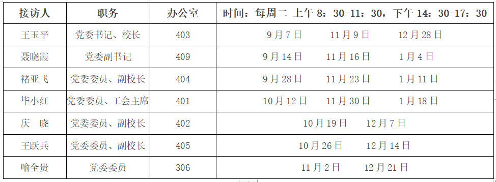 2021-2022學年第一學期“馬鞍山二中校領導幹部接訪日”安排表