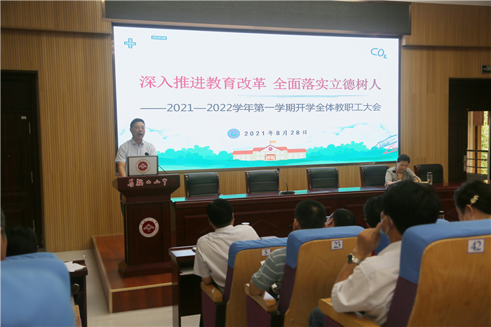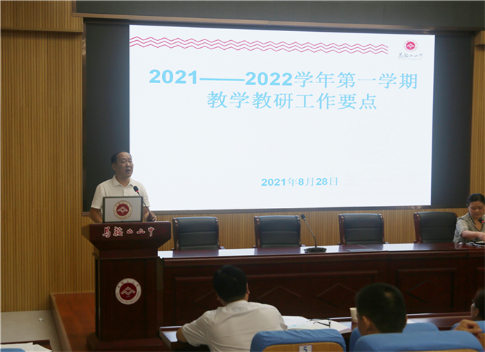 8月28日,馬鞍山市第二(èr)中(zhōng)學舉行2021—2022學(xué)年第一學期開學工作會議,校黨委副書記聶曉(xiǎo)霞主持(chí)會議,學校全體教職工參(cān)加會議(yì)。