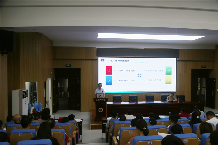 會(huì)上,他著(zhe)重對(duì)“雙減”意見、五項管理、師(shī)德師風專項治理、未(wèi)成年人保護等與師(shī)生關(guān)係密切的教育政策進行了深入的宣(xuān)講和具體部署,對青(qīng)年教師成(chéng)長實施方案和加強會議(yì)管理規定等兩項學校規章作了具(jù)體解讀;並(bìng)就嚴(yán)格落實疫情防控要求、及時查看學校發布信息兩方麵作了兩項重要(yào)提示。