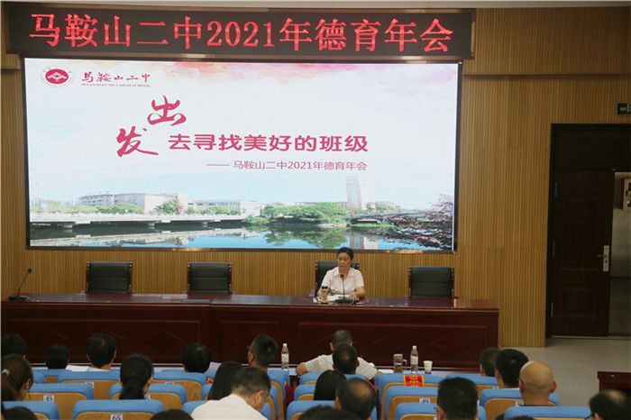 淡日晴光消暑氣,淺秋清風除纖塵。2021年9月25日,馬(mǎ)鞍山二中2021年德(dé)育年會在校二樓報告廳舉行。年會的主題是“出發,去尋找美好的班級”。本次會議由校黨委副書記聶曉霞主持(chí),校中層(céng)以上幹部、年級部成員、全體班主任及35周歲以下青年教師(shī)參加。