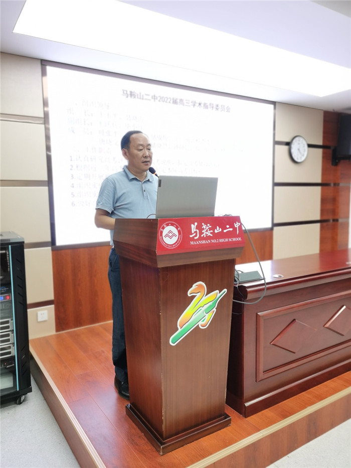 副校(xiào)長王躍兵宣讀(dú)了新一屆高考領導小組名單,並強調各自(zì)的職責。他還解讀(dú)了《馬鞍山二中2022屆高考指標(biāo)》。他從規範辦學(xué)、科學備考、強基計劃等方麵對本屆高三提出了明確的(de)要求。