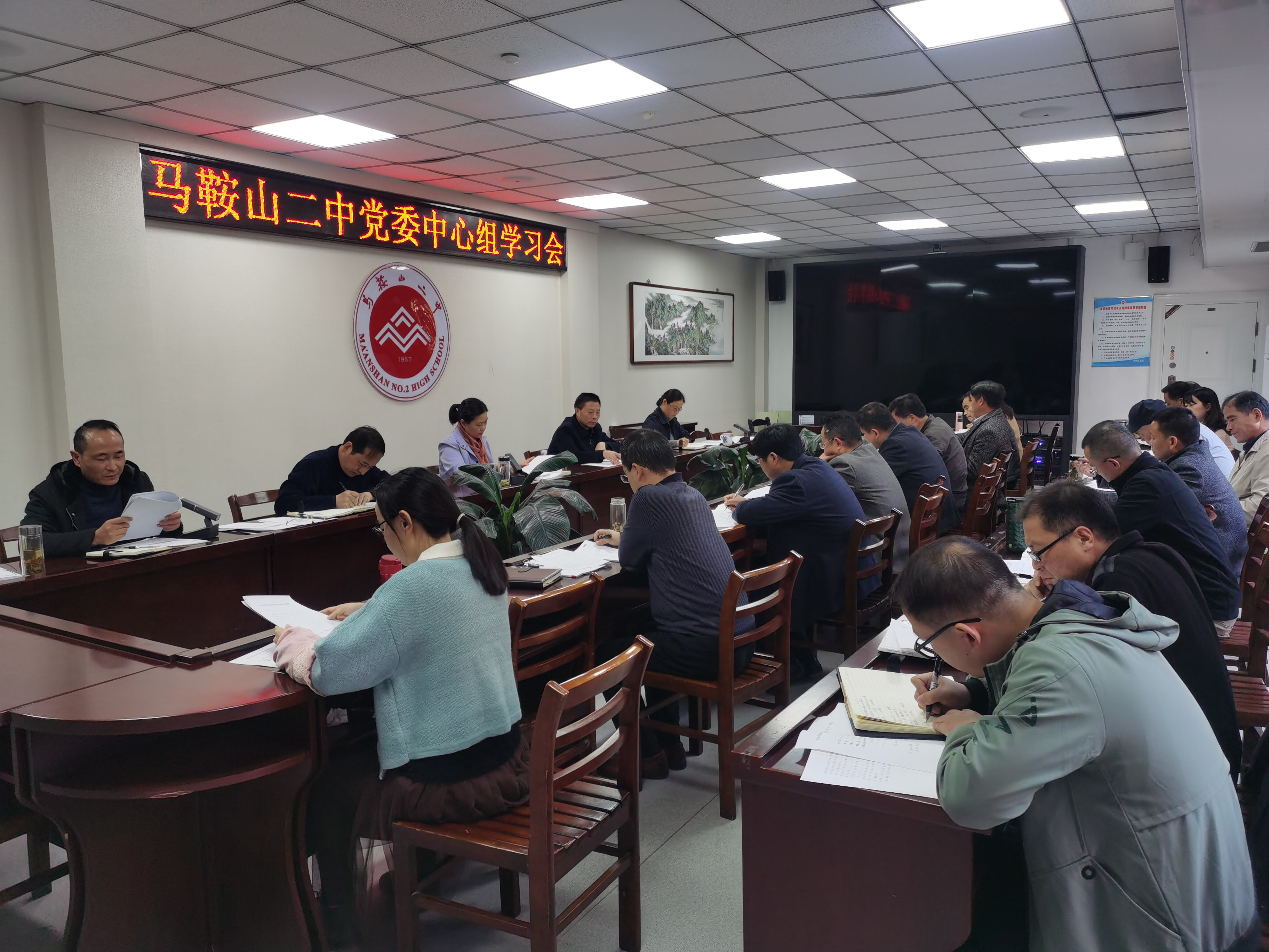 11月15日,馬鞍山二中黨委在行政樓一樓會議(yì)室召開中心組理論學習(xí)會,會議由黨委書記、校長王玉平主持,學校黨委委員(yuán)、各支部書記、學校中層以上黨(dǎng)員幹部參加(jiā)了會(huì)議。