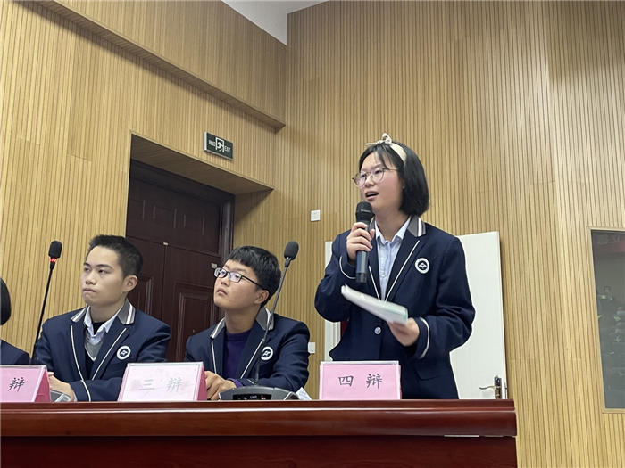 12月10日的決賽現場更是(shì)唇槍舌劍、精彩紛(fēn)呈。最終,由昌獻傑老師帶領的204班(bān)“尋夢星河”辯論隊獲得(dé)了冠軍;張陳老師帶領的202、203班“二律背反”辯論隊獲得(dé)了(le)亞軍(jun1);許會國老師帶領的219、221班辯論隊(duì)和趙博文老師帶領的212、213班辯論隊獲得第三名。四輪辯論賽共產生(shēng)最佳(jiā)辯手11名,他們分別是:202班張欣冉(rǎn)、202班婁瀚予、202班李(lǐ)顯、204班李安琪、204班陶欣然、209班安瀾(lán)、210班呂瑞峰、213班崔肇翀、218班吳嘉欣、220班柯涵若(ruò)、221班陳欣冉。