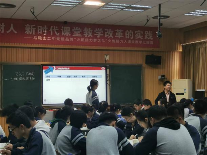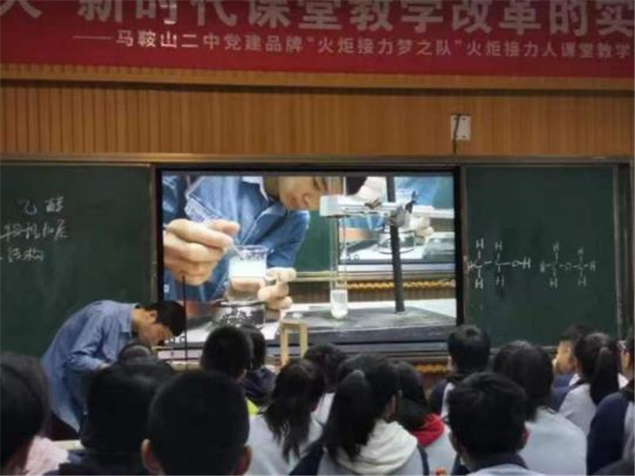 “立德樹人,新時代課堂教學改革的實踐 ”——馬鞍山二中黨建品牌“火炬(jù)接力夢之隊”火(huǒ)炬傳遞人課堂教學示範周化學示範課於5月11日上午開出。本次示範課由馬鞍山二中李(lǐ)虎老師和杜楊老師展示。馬鞍山市教科院副院長周朝暉,馬鞍山二中黨委副書記(jì)聶曉霞、教導處主任葉張平、教科(kē)處主任沈榮、教(jiāo)導處副主任喻全貴以及全(quán)市各中學化學教師參加本次活動。
