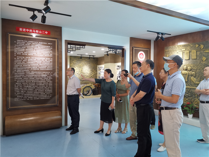 聶曉霞副書記代表學校(xiào),對民進安慶市(shì)委會和安慶一中支部同誌的到來(lái)表示熱烈的歡迎和真摯的感謝,接著帶領大家參觀馬鞍(ān)山二中校史館並作聲情並茂(mào)的解(jiě)說,隨後(hòu)來到馬鞍山二中一樓會(huì)議室開展座談交流活動。