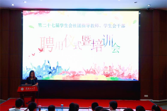 聘用儀式結束後,校團委負責人李(lǐ)紀雨老師對新一屆(jiè)學生會社團指導教師和學生幹部進行培訓。培訓會上,李老師首先對本學年學生會部門設置與調整情況進行了說明,對學生會幹部職責、社團管理製度、學生會活動報告製(zhì)度等進行了明確(què),並舉例(lì)強調了工作中常見的(de)需要注意的事項,培訓過程深(shēn)入淺出,全麵(miàn)細致。在(zài)培訓(xùn)會最後,李紀雨老師(shī)布置了近期工作,勉勵第(dì)二(èr)十七屆學生會社團指導教師、學生會幹部做好社團的(de)納(nà)新、活動組(zǔ)織與(yǔ)宣傳工作。