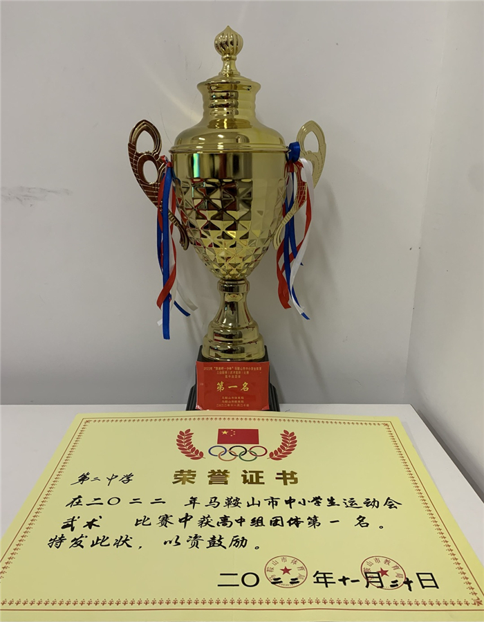 全市(shì)中小學武術比賽於11月19日至20日在馬鞍山(shān)市體育中心綜合館(guǎn)成功舉行。在緊張激烈的比賽中,我校武術隊隊(duì)員們奮勇拚(pīn)搏,爭金奪銀,為校增光添彩。共(gòng)獲得(dé)了3枚單項金牌、4枚銀牌、2枚銅牌,並(bìng)獲得團體總分第一名的好成績(jì)。