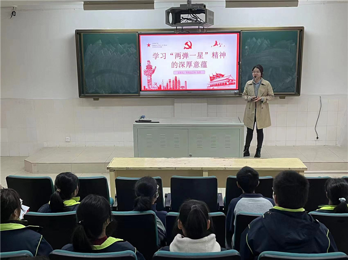 團課第二講《學習“兩彈一星”精神的(de)深厚意蘊(yùn)》由團校教員張貝老師主講。張貝老師向同學們介紹了“兩彈一星”精(jīng)神的產生(shēng)背景和基本內涵。作(zuò)為(wéi)共產黨人精神譜係中璀璨一員的“兩彈一星”精神,激勵著二中學子自立自強、知難而進、主動擔當、積極作為,將強烈的愛國之情(qíng)和報國之誌融於(yú)到學習和實踐中,為實現中(zhōng)華民族的偉(wěi)大(dà)複興貢獻力量。