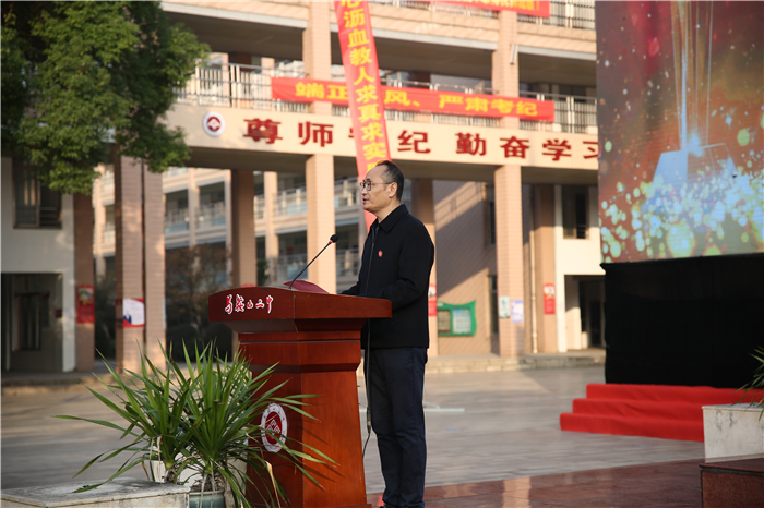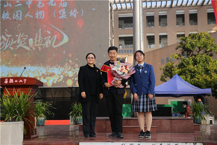 上午8時,全校師生齊聚廣場,共赴(fù)感動之約。副校長慶(qìng)曉宣讀表彰決定:經過全校師生認(rèn)真評(píng)選,湯洪升(shēng)、庾金保、閆明、劉聲華、王忠文、沈秋發、潘文傑老師,楊師林校工,高202班劉雨欣同學,獲第九屆(jiè)“感動校園人物”榮譽稱號;2022屆高三(sān)數學備課組,獲第九屆“感動校(xiào)園集體”榮譽稱號。市(shì)教育局(jú)黨委委員、副局長王東(dōng)山,安徽省(shěng)唯因篤建(jiàn)設(shè)工程公(gōng)司代表楊詩蕊,安徽華冶律師事務所代表陳懷彬,泰爾重工(gōng)股份有限公司代表許嶺,馬鞍山農村商業銀行經理齊金海,馬鞍山家和投資公司董事長方中等蒞臨現場致賀(hè)。二中黨(dǎng)委書記、校長(zhǎng)王玉平,副校長褚亞飛,工會主席畢小紅,副(fù)校長王躍兵,黨委(wěi)委員喻全貴,與全校3300多名師生共同參加這一盛典。