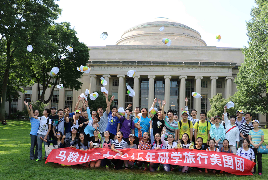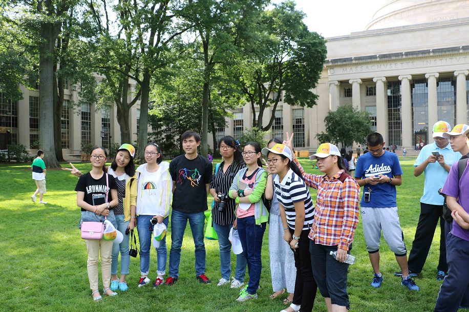 Hello Boston ! 一個上午的奔波(bō),終於在下午得以一睹兩所世界名校——哈佛大學和麻省理工學(xué)院的(de)風采。波士頓,這座文(wén)化名城,從兩(liǎng)百(bǎi)多年前一群青年倒入海中的(de)茶葉的香(xiāng)氣裏,便醞釀著,滋潤著美國文化生長,壯大,繁榮。與北大(dà)清華(huá)高高豎起的門牌不同,哈佛則“低調奢華有(yǒu)內涵(hán)”。一座看似普普通通的門,卻通向無數學子向往的知識殿堂。紅磚白瓦,鬱鬱蔥蔥的參天(tiān)大樹,使校園中多了幾分生氣,也體現了哈佛人對真理汲汲渴望與孜孜探求的深沉。和學生導遊漫步(bù)校園,她的開朗與幽默(mò)深深感染了我。圖書(shū)館的故事,既讓我開懷地融入其(qí)中,也(yě)使我不禁讚歎他們的勤奮與(yǔ)努力。' This moment will nap, you will have a dream; but this moment study, you will interpreta dream. '記(jì)得圖書館中有這樣一句(jù)話,或許正是這樣的學習精神,才使(shǐ)得哈佛培養出不計其數的深深熱愛著母校的人才。作為一個文科生,可能我與麻省理(lǐ)工就此無緣,但(dàn)置身其中,濃厚的學習氛圍和優(yōu)美的環境讓我放鬆。羅馬式的建築,鬆軟芬芳的草地,歡呼,嬉笑,追逐,打鬧,或是悄悄用鏡頭記錄湛湛(zhàn)藍天與綿綿白雲,靜靜躺下呼吸一抹清香,總能在某一時某一刻收獲內心的愉悅。合照中,每個人都笑得(dé)燦爛,像那照耀天(tiān)空的陽光,充滿對(duì)未來的渴望。遠處是隨風飄揚的校旗……