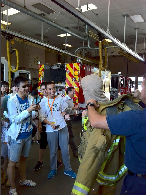 下午,洛杉磯的一個消防局,參觀。本以(yǐ)為這隻是一個無聊透頂的“溜(liū)達”,可真正感受時,才發現自己真的是差點錯過了(le)一些重要的東西。通過消防員的詳(xiáng)細介紹,我才發現消防局哪裏(lǐ)是消防局啊,簡直(zhí)就是一個“萬能通”——倒(dǎo)不是說他什麽都會,可隻要人們一有(yǒu)問題,哪怕(pà)是貓咪不見了(le),消防員們(men)也得馬不停蹄(tí)的趕到,可想而知他們得多麽的“勤勞”。當然,消防員也並非是人人都(dōu)可以當的,經過層層(céng)篩選後,1萬名申請者隻有不到150人可以(yǐ)得到聘用。如此激烈的競(jìng)爭(zhēng),若非是有過人之處或是一(yī)技之長,怎能脫引(yǐn)而出(chū)呢?