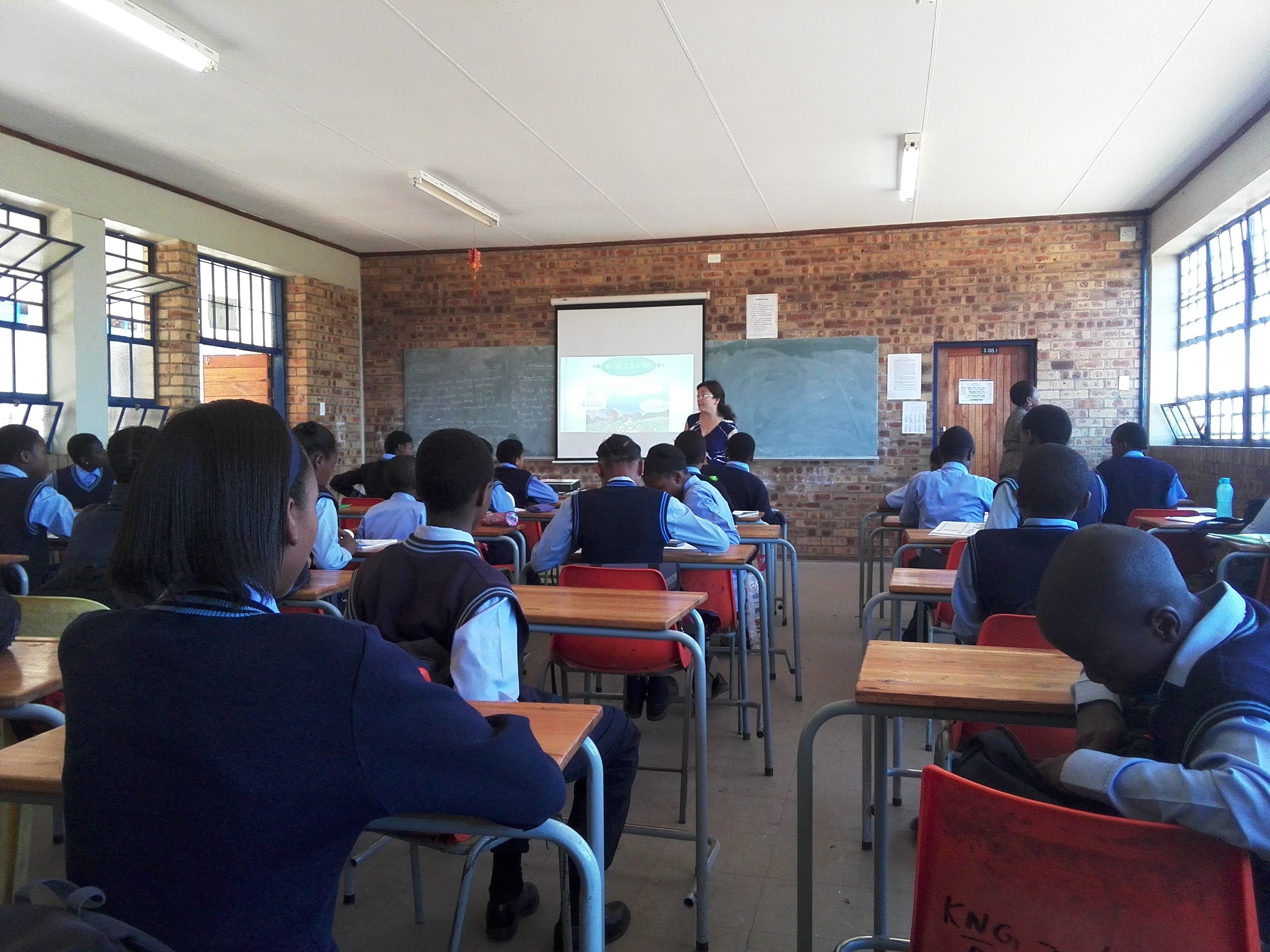 據我目前的觀察(chá),南非現在中文教學形式(shì)一片大好,非洲26個國家中共有36個中(zhōng)文教(jiāo)學點,南非占了8個,其中5個(gè)孔子學院,3個孔子(zǐ)課堂。我意識到,漢語推廣工作在南非尤其是在豪登省剛剛起步,正(zhèng)是如火如荼之時。於是我想,我來這裏,是能夠真正為漢語(yǔ)推(tuī)廣獻出綿(mián)薄之力的,尤其是在前期準備工作上,每(měi)一位中文教師,都(dōu)能夠(gòu)在當地教學的圈子(zǐ)中產生直接的(de)影響。