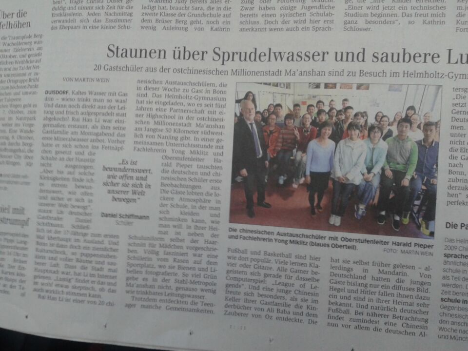 注:這是波恩市一家報紙對馬鞍山二中來訪的專題報(bào)道。圖中是兩校師生在一起的合影