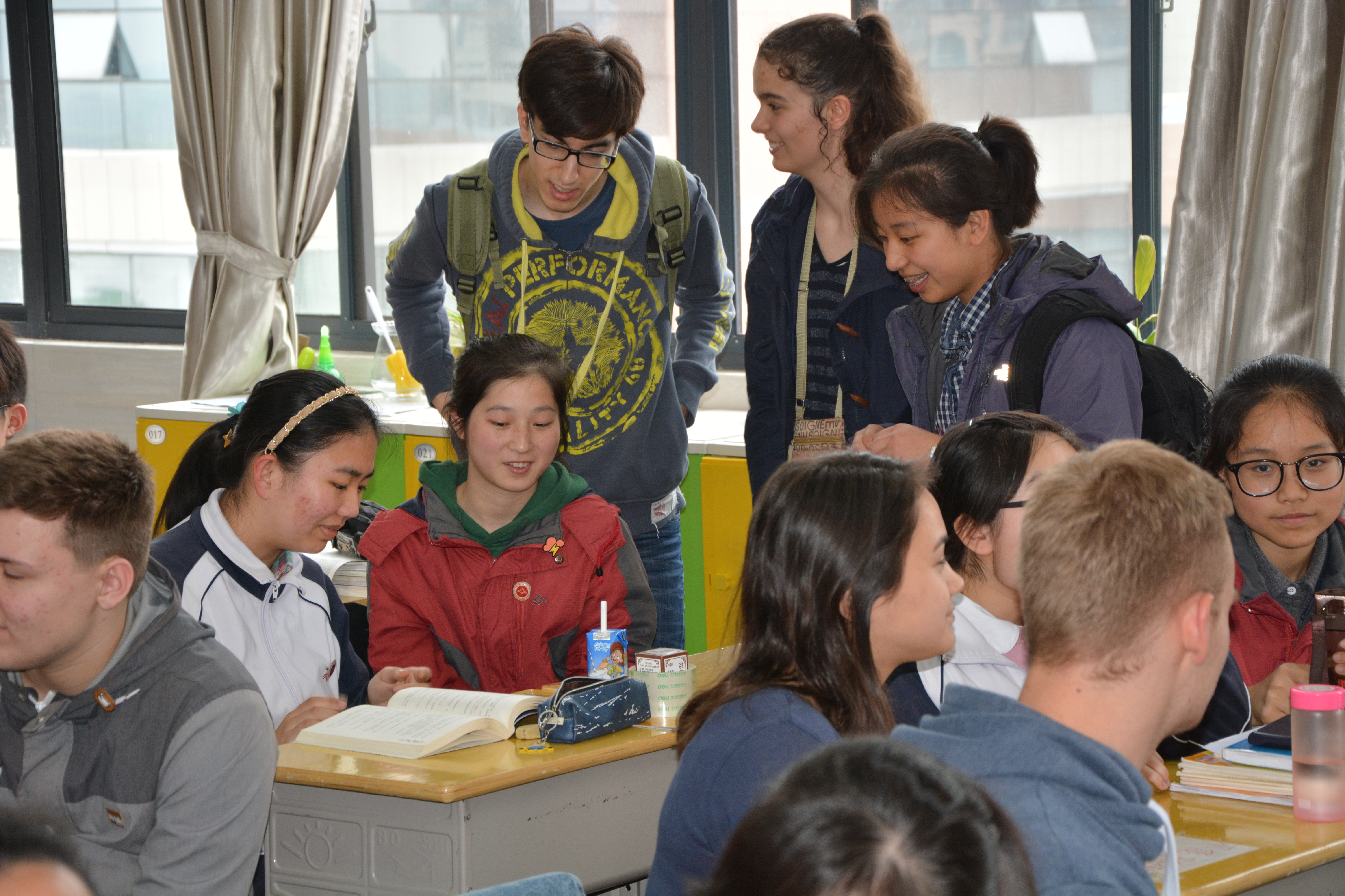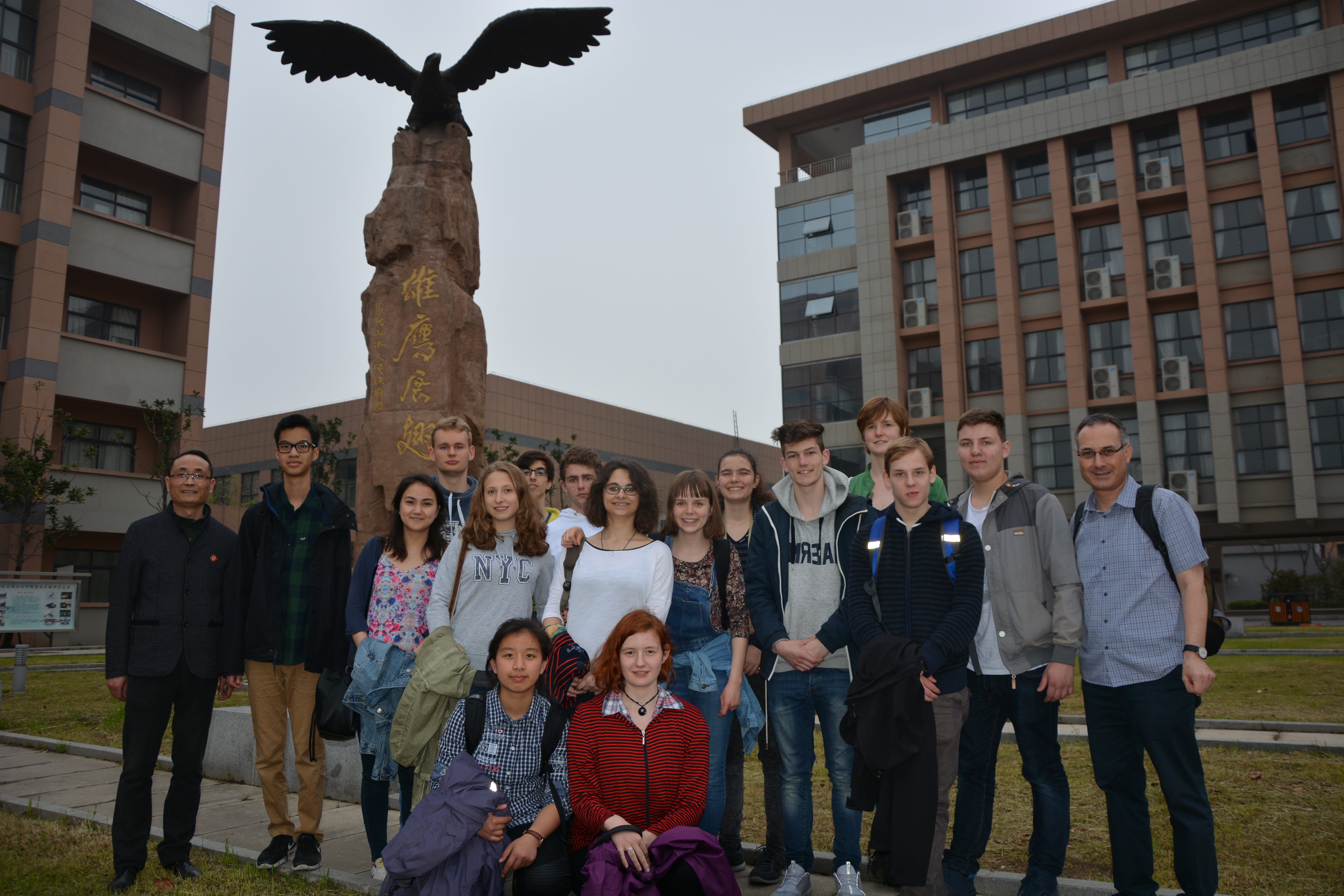 在油菜花盛開的季節,91视频网站迎來(lái)了德國友好學校師生交流團,一行17人(學(xué)生15名(míng),2名領隊教師)。4月5號下午,交流團來到了馬鞍山二中鄭蒲港分校參觀考察。分校校長(zhǎng)慶曉先生帶領德國友好學校交流團參觀了分校(xiào)校園,介紹了分校曆史,並親自指導德國師生體(tǐ)驗感受中國書法魅力(lì)。德國師生徜徉在分校校園,一路歡聲(shēng)笑語,流連忘返。最後,慶曉校長與德國師生(shēng)親切合影留戀,此次分校之行,圓滿拉下帷幕。