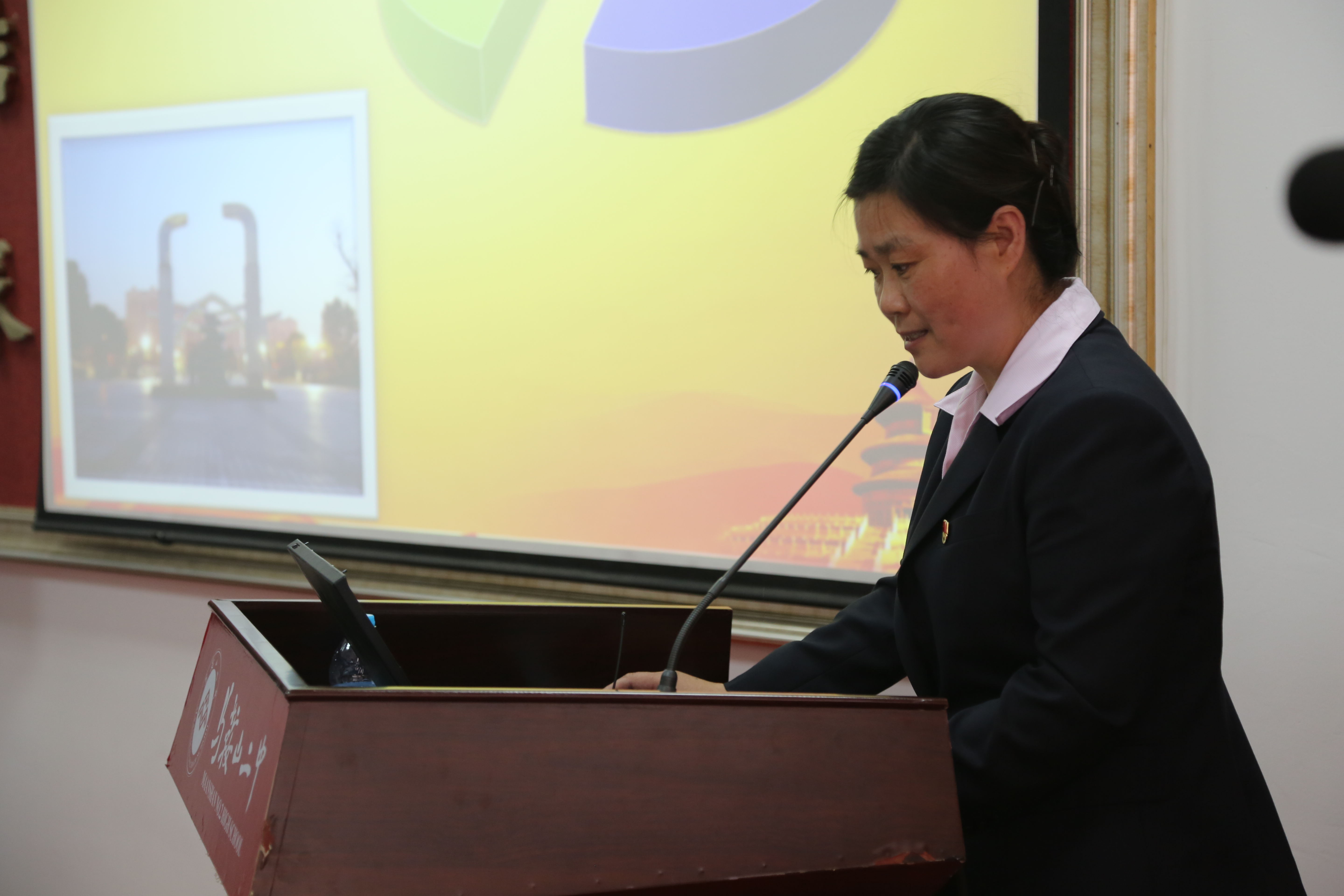 聶曉霞書記代表學校黨委做題為“立足崗位樹先鋒形象、立德樹人創優質示範”的“兩學一做”學習教育工作匯報
