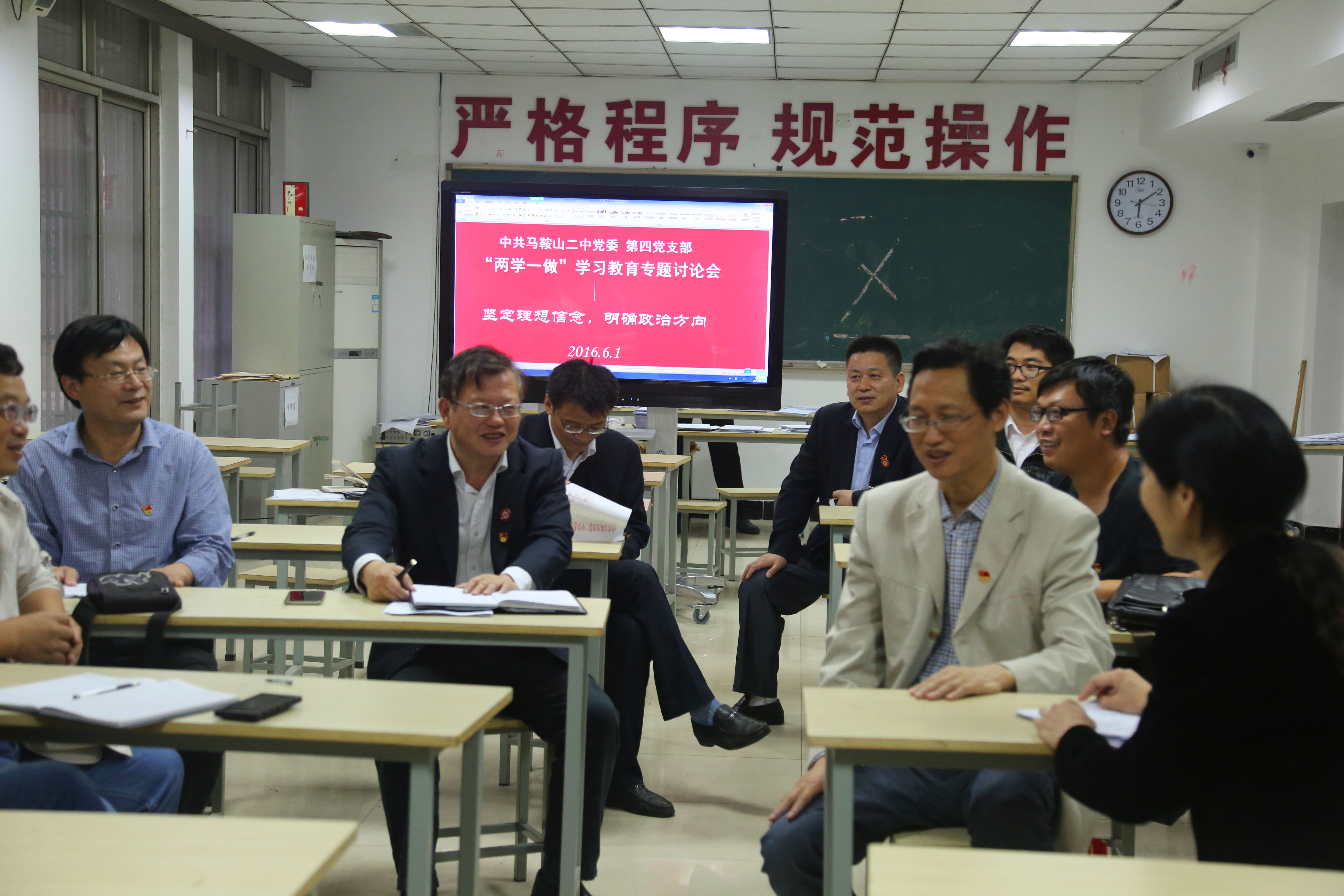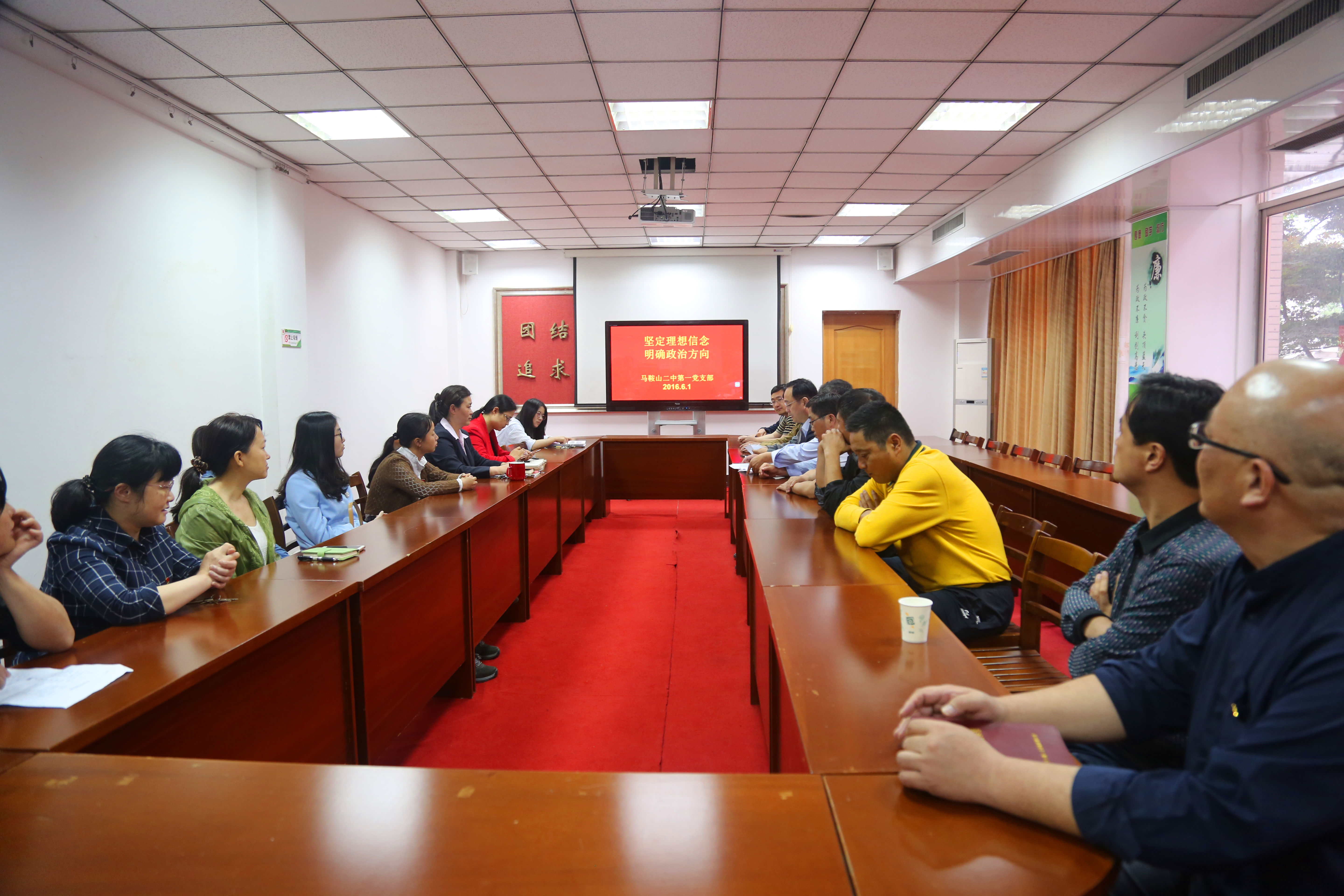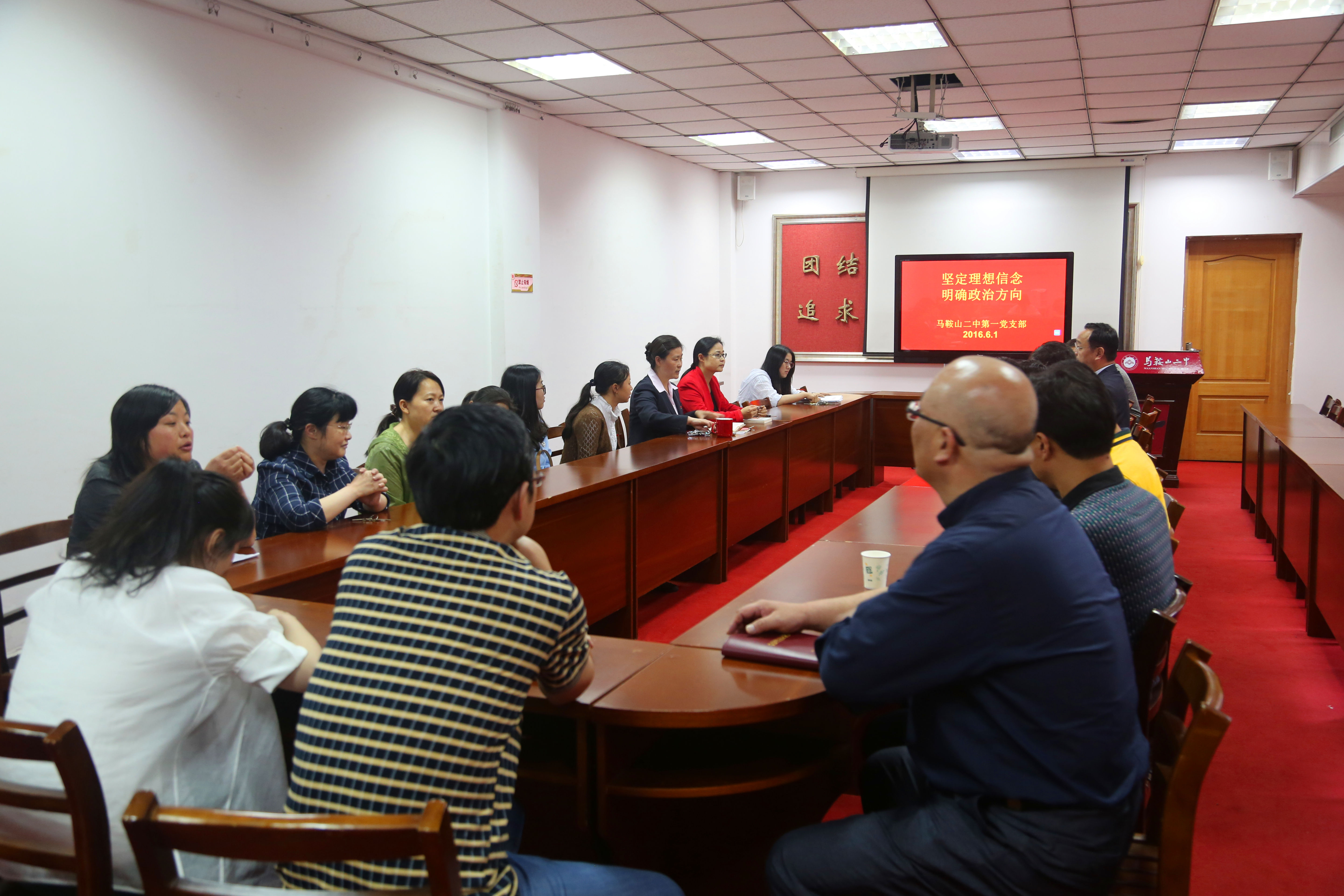 2016年6月1日下午六點開始,我校黨委下屬四個(gè)在職黨支部(bù)利用休息(xī)時間集中學習,召開專題(tí)學習研討(tǎo)會,圍繞“堅定理想信念 明確政治方向”開展學習研討。會議由各支部支部書記主持(chí);校黨委全體委員以(yǐ)普通黨員(yuán)身份分別參加(jiā)所在支部的專題(tí)學習,並結合(hé)學校工作實際和分管工作情況交流學習體會。各支部全體黨(dǎng)員參加了會議,黨員們紛紛表示要更加堅定理想信念,明確政治方向,在黨言黨,在黨為黨,在黨護黨,在黨(dǎng)興黨以實實在在的教育教學工作成績體現共產黨人的精神風貌,為辦好人民滿意的學校——二中做出自己應有的貢獻。