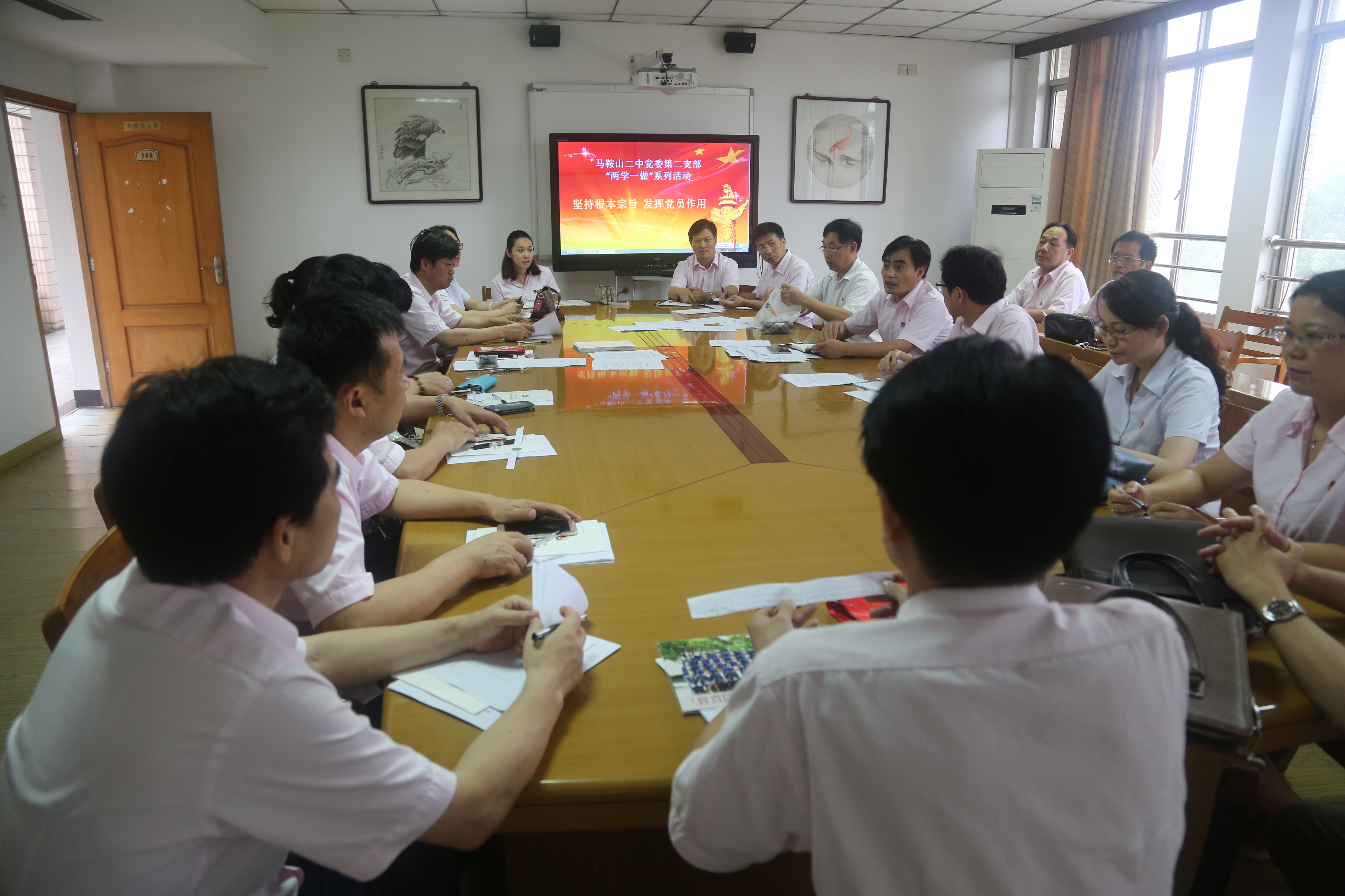 2016年7月4日下午五點半開始,馬鞍山二中校黨委下屬四個在職黨支部利用休息時間集中學習,召開專題學習討論會,圍繞“堅持根本宗旨 發揮(huī)黨員作用”開展學習研討。
