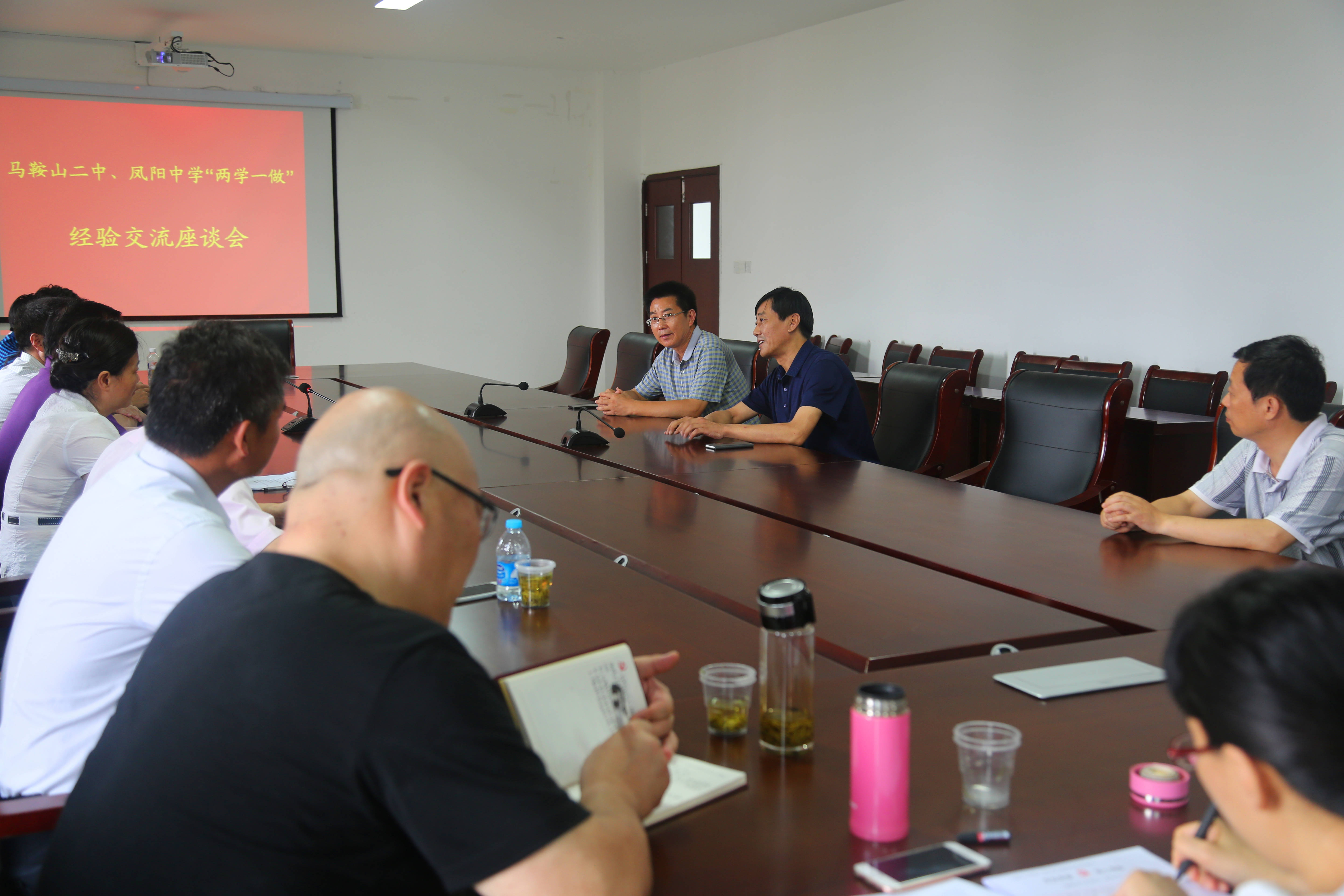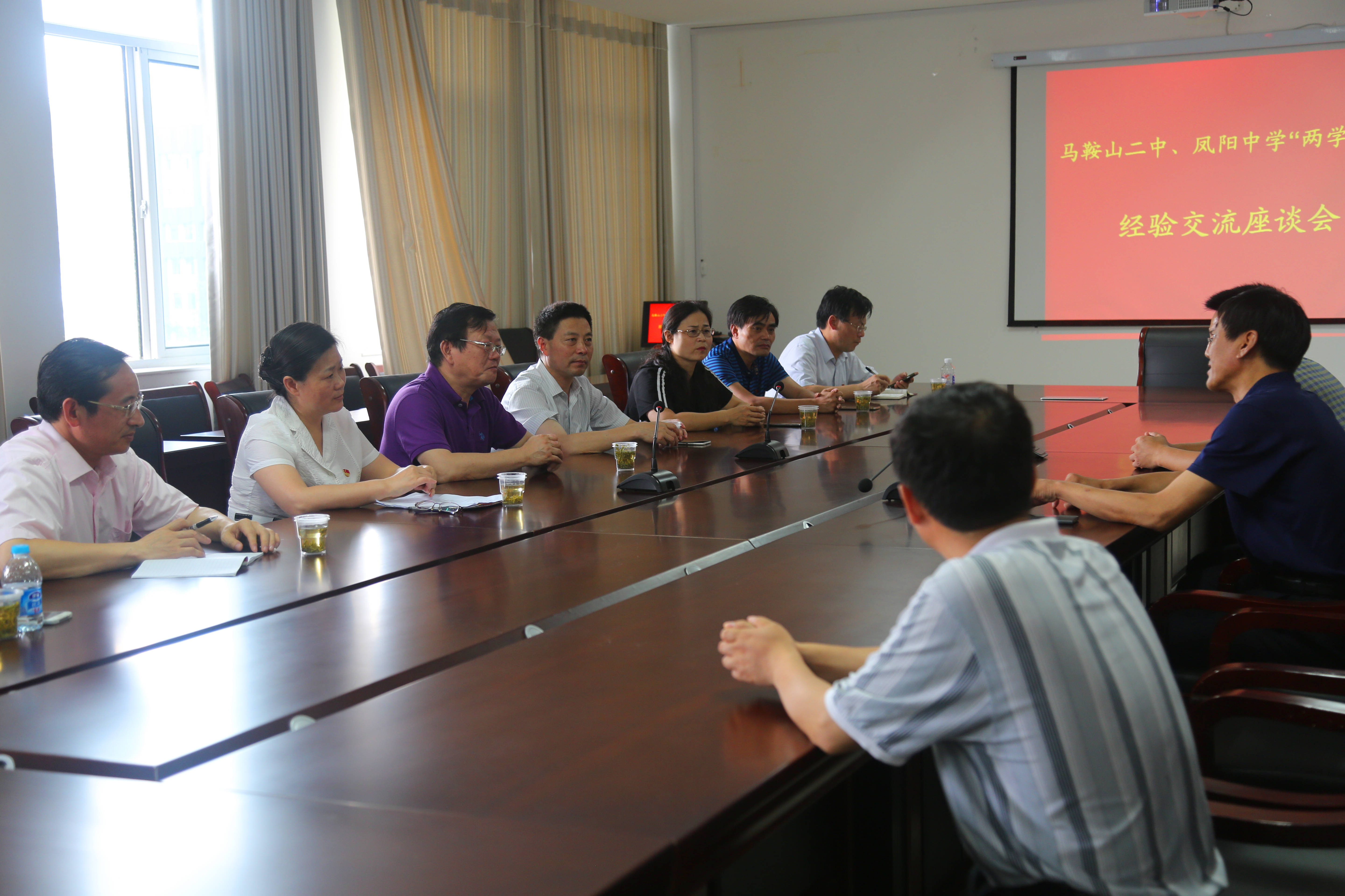 參觀完畢後,同誌們來到了鳳陽中學,與鳳陽中(zhōng)學領導班子進行(háng)了“兩學一做”學習教育工作交(jiāo)流研討。