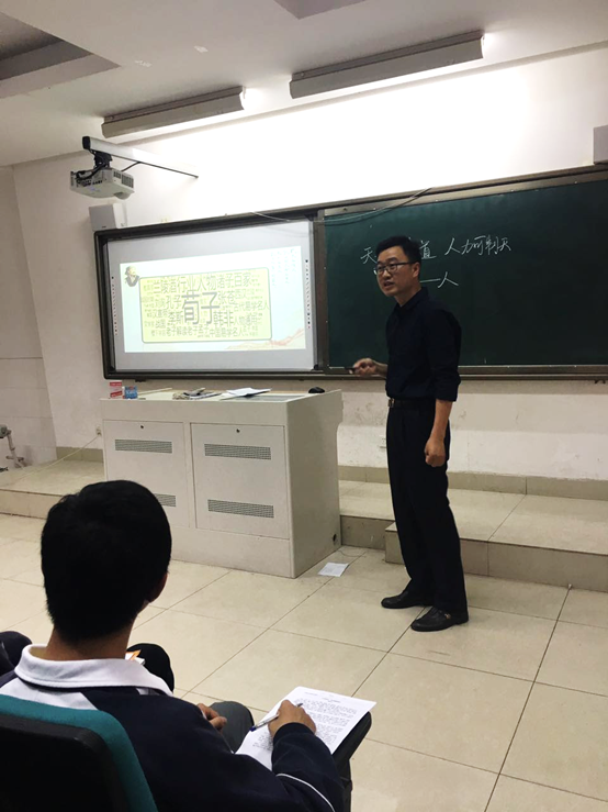 第二節課為杜飛老師的《大天而思之 孰與物畜而製之》。這是一篇經典(diǎn)的古代專題論文,體現了荀子哲學思想的精髓,文本雖然很隱晦艱澀,但杜老師抓住荀子散文的說理特點和其思想的基本內涵,“窺一斑而知全豹”,由點到麵、深入淺出地(dì)引領(lǐng)學生透過(guò)文(wén)字,在誦讀和思考中去提升學生的思維(wéi)品質和審美鑒賞能力。整(zhěng)節課流程順暢,教學目標的互動生(shēng)成(chéng)也真實有效。課堂板書設計獨特新穎,並緊扣文本核心;通過適(shì)時講解“禮”“義”等字源,增添(tiān)了課堂教學的生動性,又讓學生感受到傳(chuán)統文化的熏陶。
