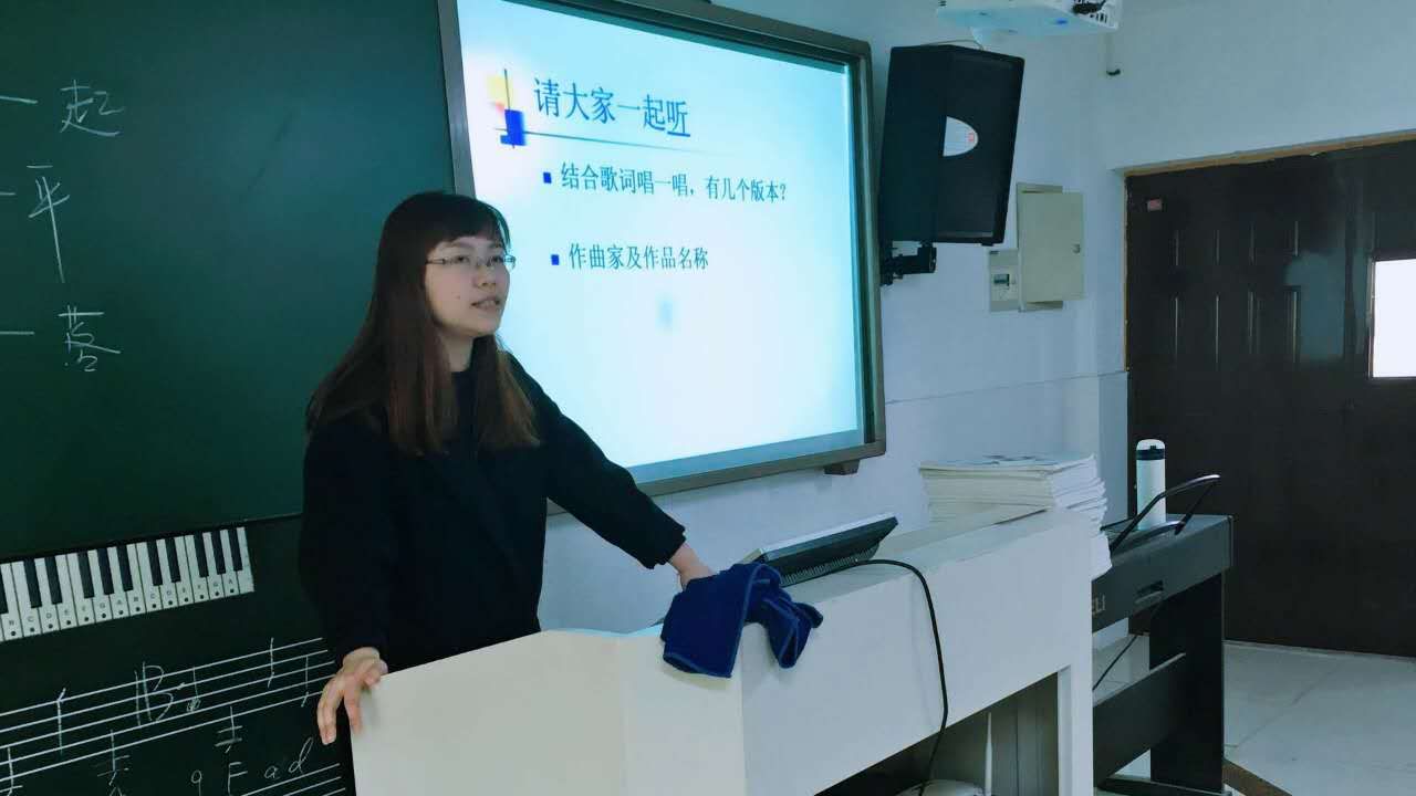 音樂教研組安排(pái)的是青年教師辛聞的公開課。雖(suī)然是年輕(qīng)老師(shī),但是辛聞老師(shī)上課(kè)可沒(méi)有一點怯(qiè)場,她在課堂上的表現可謂落落大方,她語言表達清(qīng)晰賦有感染力,教(jiāo)學中時不時穿(chuān)插(chā)著她與學生的互動。互動是多方麵的,有語言的(de)交流,有動作的模仿,有會心的一(yī)笑,也有明白的一個眼神,這些都讓課堂上充滿生機和活力。辛聞老師知識麵(miàn)廣,鋼琴演奏基本(běn)功紮實,還有非常(cháng)突出的英文功底(dǐ),讓課堂更加(jiā)豐富多彩。本課內容豐富,選擇的例曲很恰當,辛老師很好的把控了課堂的(de)教學節奏,是一節很成功的公開課,辛聞是一位非常有潛力的好老師!