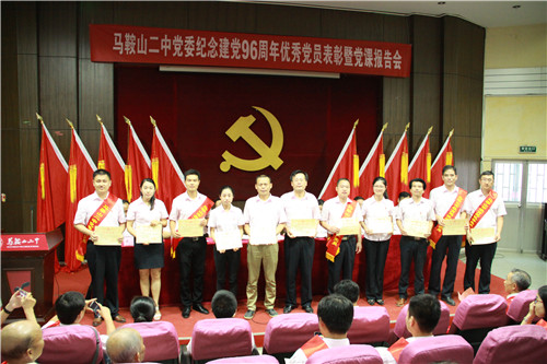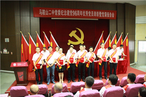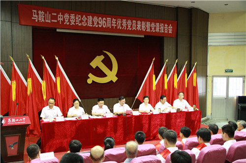 7月(yuè)4日下午4點,馬鞍山二中黨委召開紀念建黨96周年優秀黨員表彰暨黨課報告會,全體黨員參加會議。