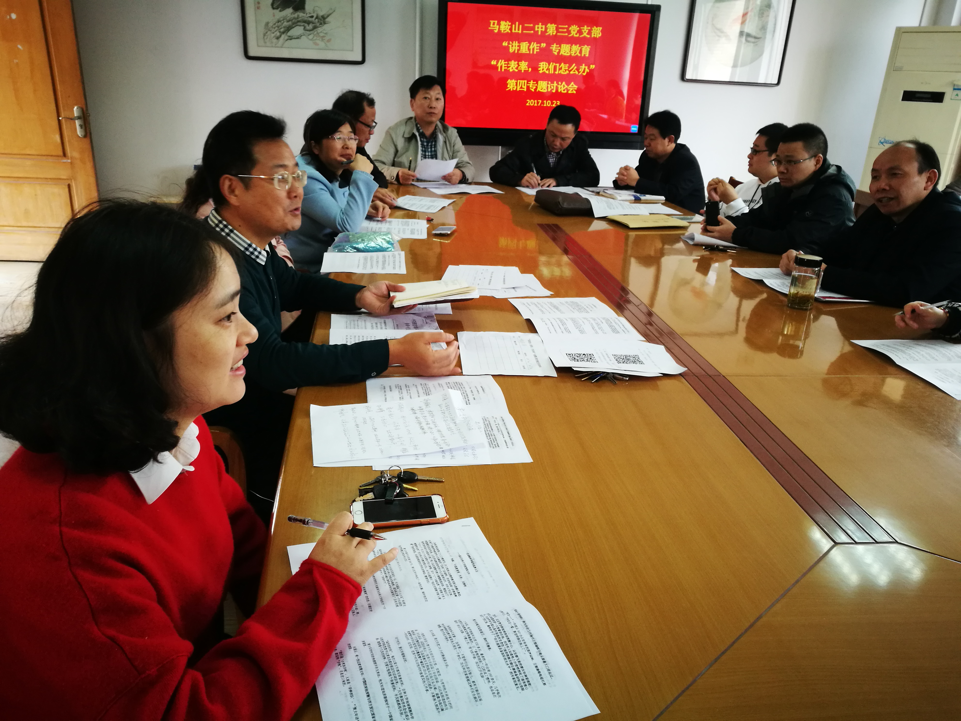 10月19日至23日,根據上(shàng)級黨(dǎng)委(wěi)和學校黨委的統一部署,馬鞍山二中黨委所屬各支(zhī)部(bù)分別召開開展“講政治、重規矩、作表(biǎo)率”專題教育“作表率,91视频网站怎麽辦”專題討論會。