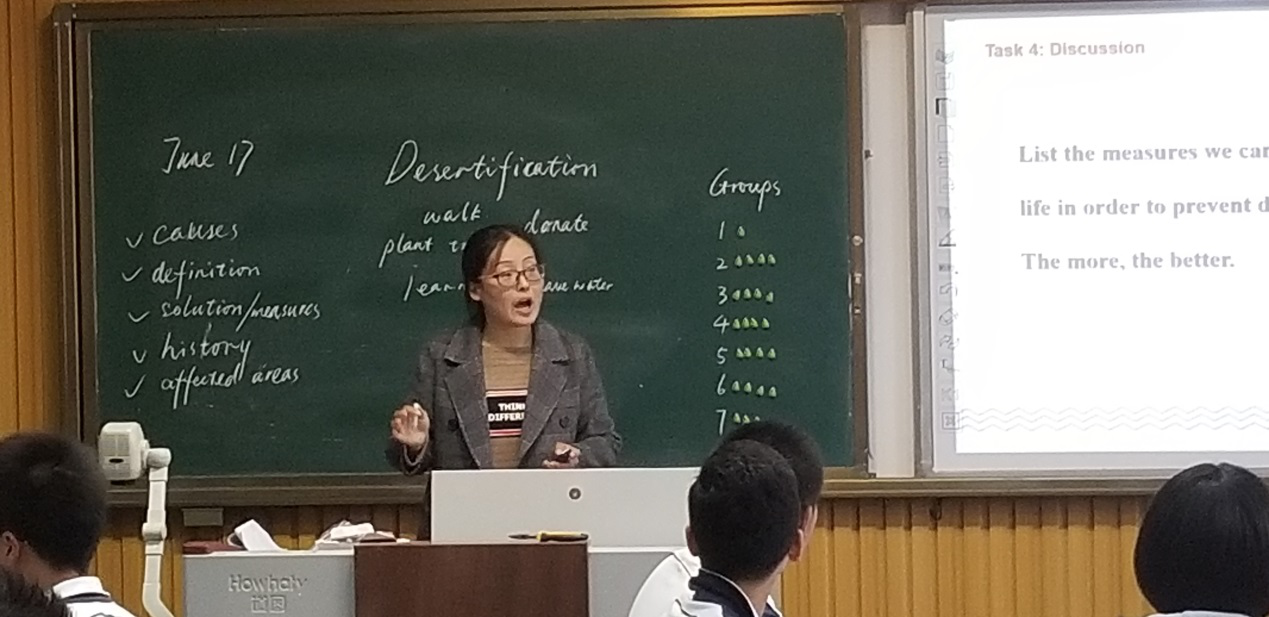 方靜(jìng)老師則(zé)以6月17日(rì)“世界抗沙漠化日”進行有效導入,帶領學生了解沙漠化的起因,解決措施等方(fāng)麵,引導(dǎo)學生關注環境保護問題。方靜(jìng)老師課(kè)件設計精美(měi),教學活動安排得井然有序,體現了極高的教學素養。與此同時(shí),她還利用小組(zǔ)比賽的(de)方式(shì),激發(fā)學生的閱讀熱(rè)情,高效地調動(dòng)了課堂氣氛(fēn),提高了(le)閱讀成效。