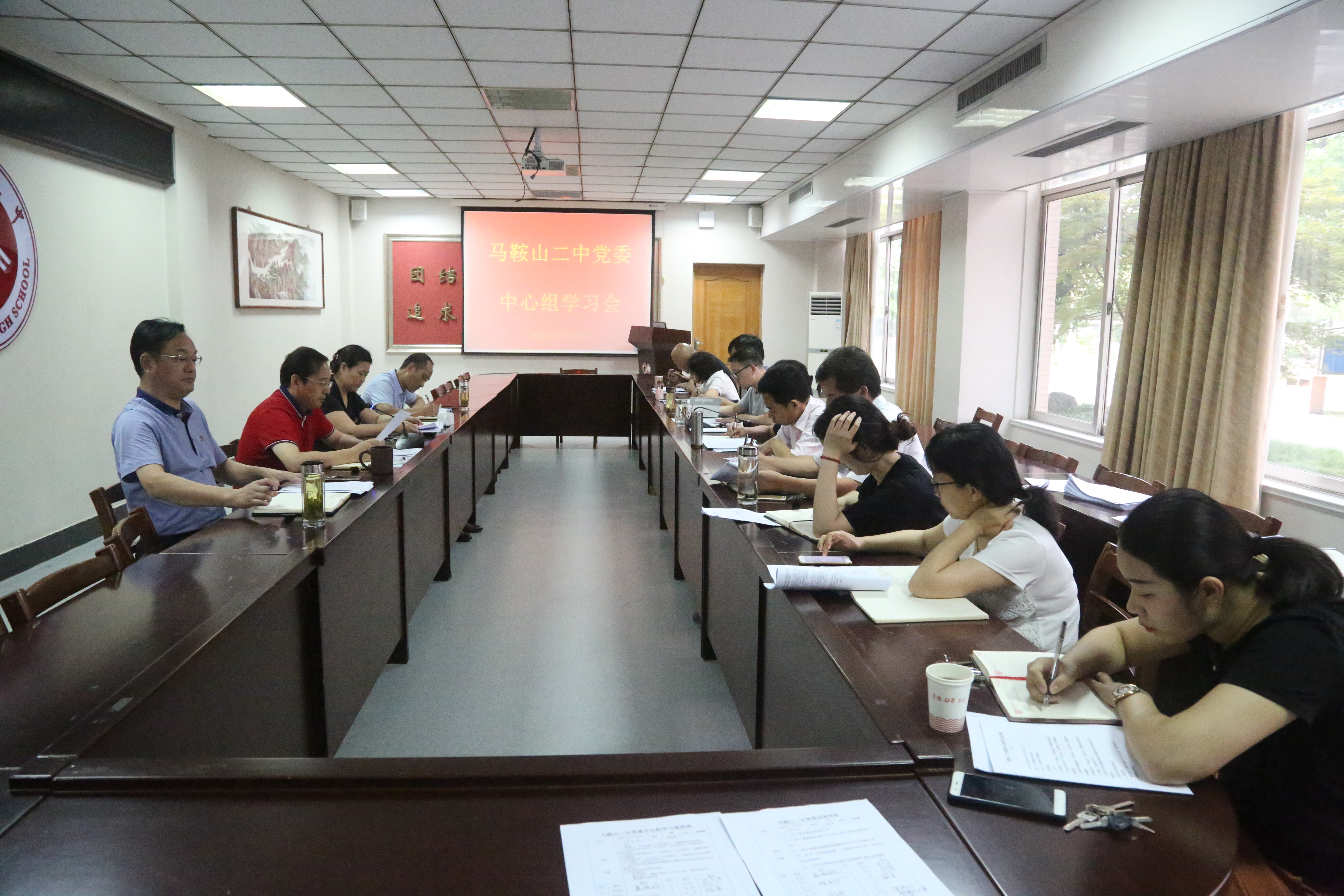 7月16日,馬鞍山(shān)二中(zhōng)黨委在行政樓一樓會議室(shì)召(zhào)開黨委中心組理論(lùn)學習(xí)會。會議由黨委書記聶(niè)曉霞同誌(zhì)主持。