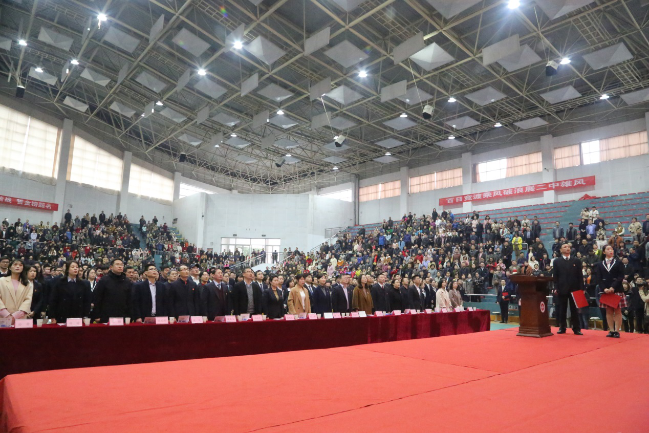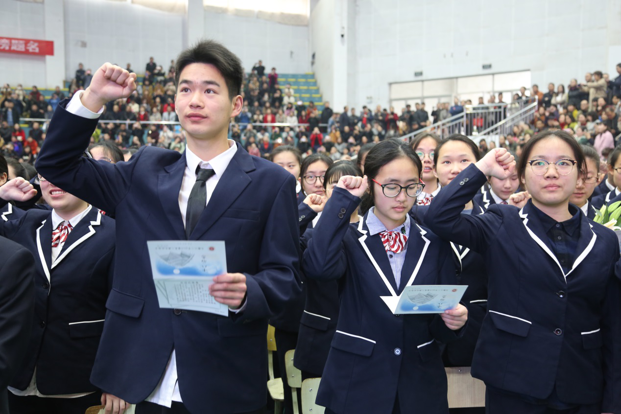高301班陳可人帶領全體(tǐ)高三同學(xué)宣誓,同學們宣誓做祖(zǔ)國(guó)忠誠的兒女,以壯誌激情創(chuàng)造嶄(zhǎn)新未來,以火紅青春,建設美好(hǎo)家園,不忘初心(xīn),砥礪前行,牢記新使命,不負新時(shí)代!