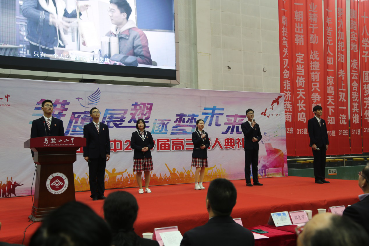 3月18日上午8:00“雛鷹展翅 逐夢未來”馬鞍山(shān)二中2019屆學生成人(rén)典禮在(zài)校體(tǐ)育館(guǎn)拉開帷幕。團市(shì)委(wěi)副書記都城、團市委學少部副部(bù)長柴靜、全體學校領導(dǎo)、全體高三家長和師生以及“陶源中學名團幹工作室”的成員出席了(le)典禮。典(diǎn)禮用時60分鍾,內容豐富,情真意(yì)切。
