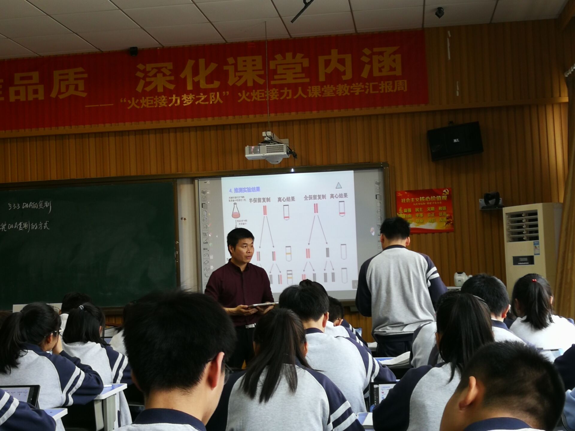 黃振峰老師執教的是《DNA的複製》一課,黃老師通(tōng)過組織學生進行DNA分子複製方式的探究和複製(zhì)過(guò)程的探究,順利達成了教(jiāo)學目標。黃老師的課堂結構完(wán)整,邏輯(jí)嚴密,重視探究過(guò)程和(hé)學生的主體(tǐ)地位。