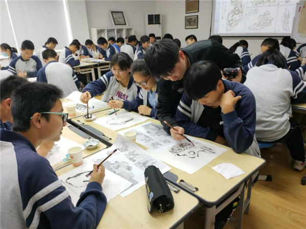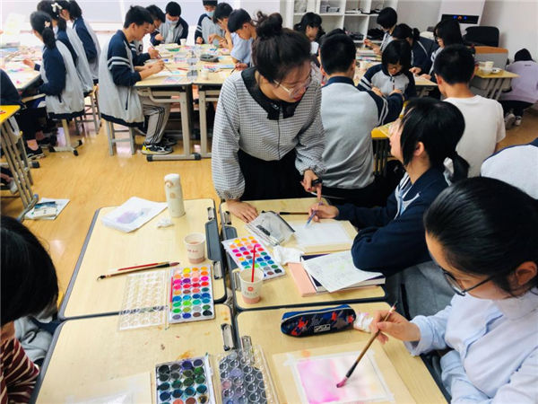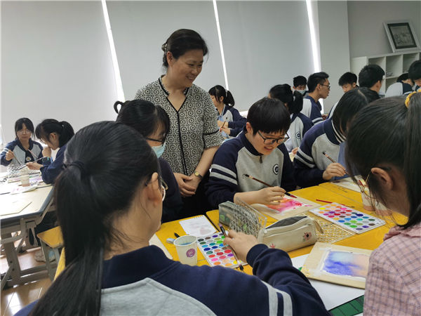 美術(shù)組分別由高聖乾和胡浩淼兩位青年教師(shī)承擔了此次新教材繪畫模塊的教學任務。高聖乾老師以《觀(guān)山畫石 遷想妙得——“石頭記”》帶領學(xué)生(shēng)走進目識心記(jì)的山水畫專題課程;胡浩(hào)淼老師以創意(yì)水彩《星(xīng)空之下》為題帶領學生探索(suǒ)水彩畫的魅力。兩(liǎng)位老師充分根據學(xué)生實際情況、立足“大概(gài)念”設計課程,將主課堂交給學生(shēng),完成本次課程的實(shí)踐部分,以達到(dào)教師為主導,學生為主體,體現了(le)新教材新課標下大單元教學理念。學校黨委副書記聶曉霞、市美術教研員陳克濤和全市中(zhōng)學美術教(jiāo)師參加聽課。